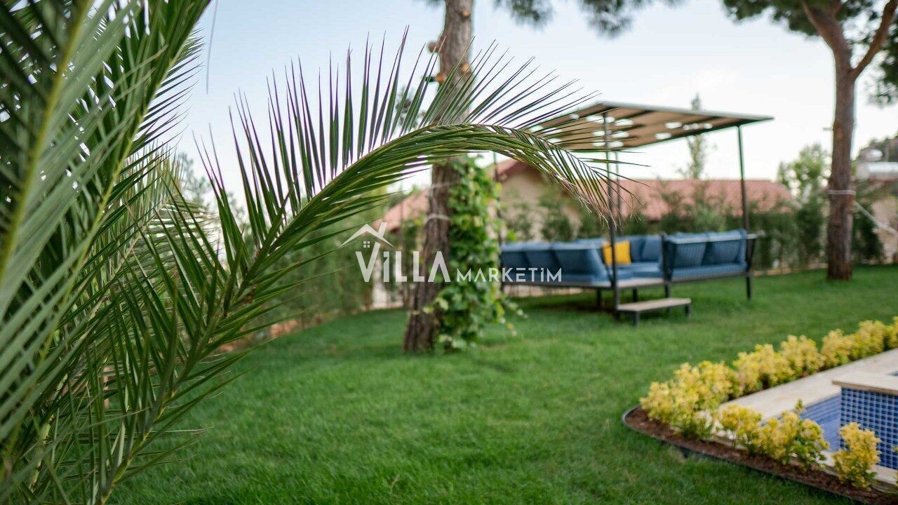 Özel yüzme havuzu, Şezlonglar, bahçe oturma grubu, hamak, köşk, yemek masası ve sandalyeleri bulunur.