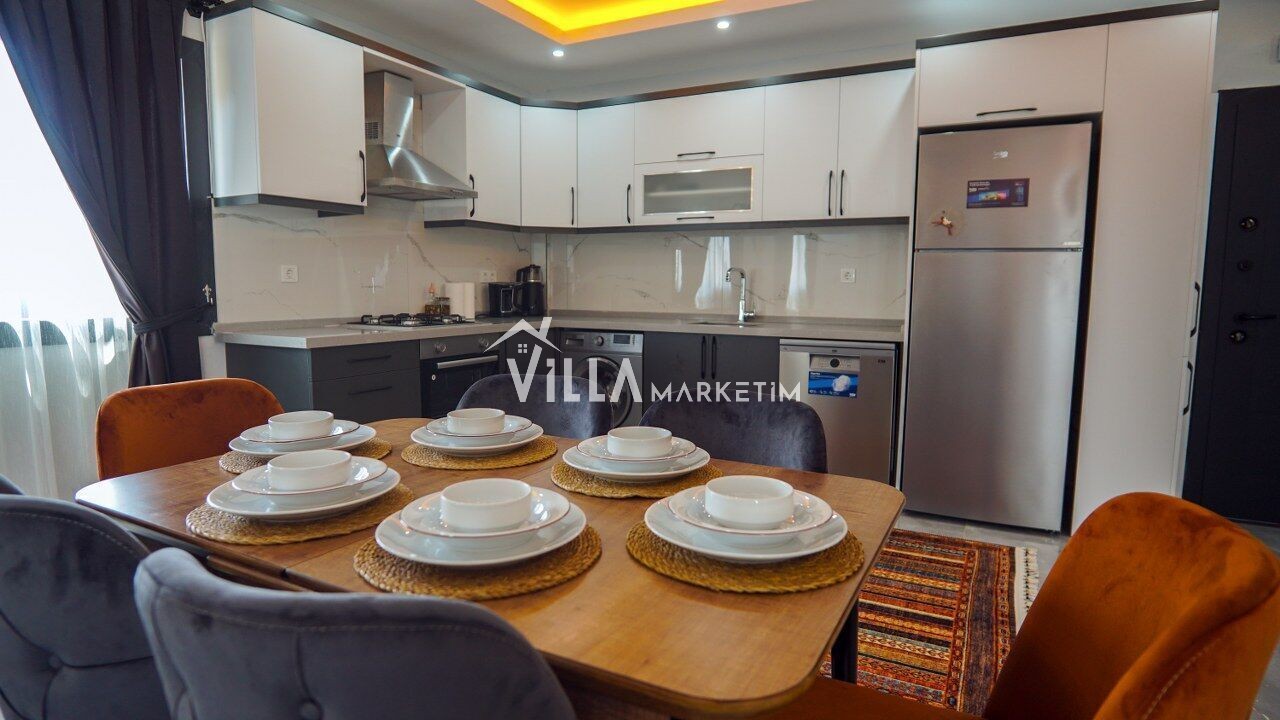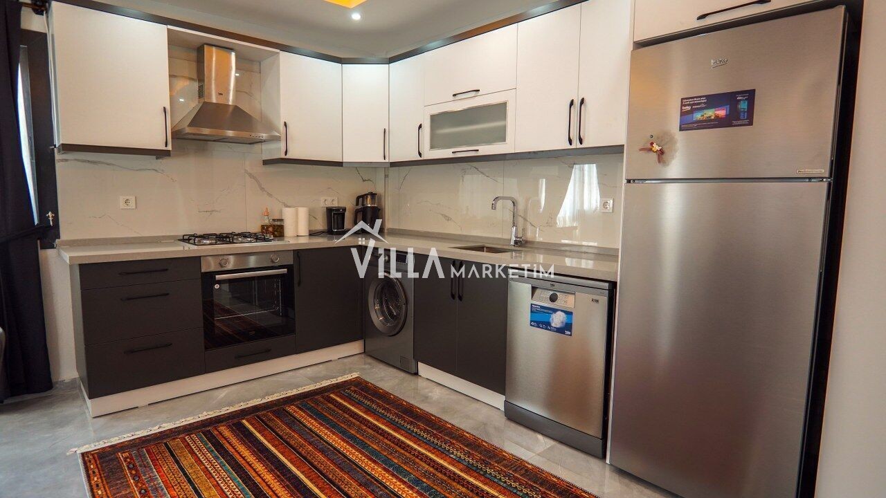 Mutfak : Buzdolabı, çamaşır makinesi, bulaşık makinesi, fırın, ocak, çay makinesi, 4 kişilik yemek takımı, çatal-bıçak seti tava-tencere vb bulunmaktadır.