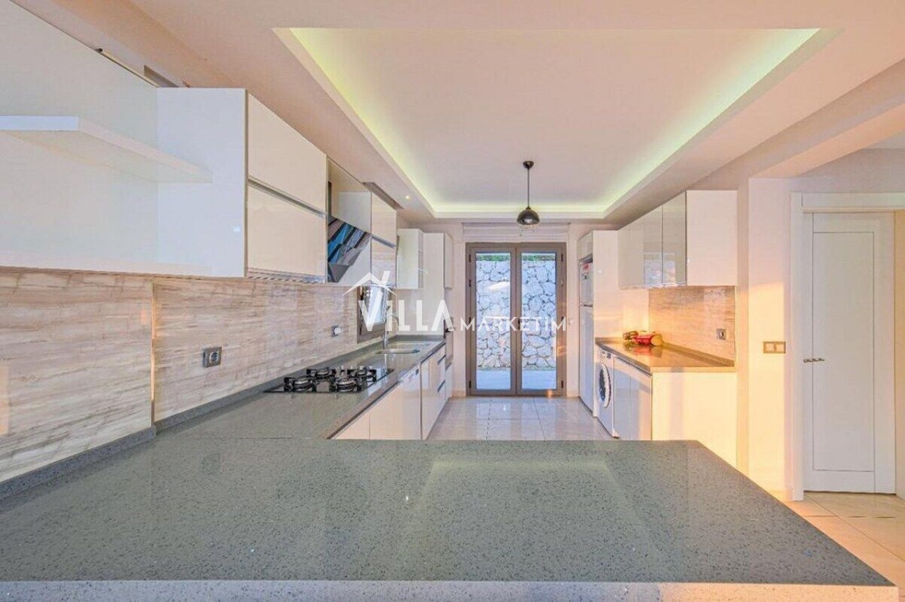 Lüks ve geniş bir mutfağa sahiptir. Buzdolabı, bulaşık makinası, çamaşır makinesi, fırın, 4´lü ocak, kettle, 8 kişilik yemek takımı, tava, tencereler, çatal, bıçak vb. Mutfağımız ´da misafirlerimiz için her şey düşünülmüştür. Ayrıca tatil esnasında eksik bir ürün olursa bize söylediğiniz durumda hemen tedarik ediyoruz sizin için.