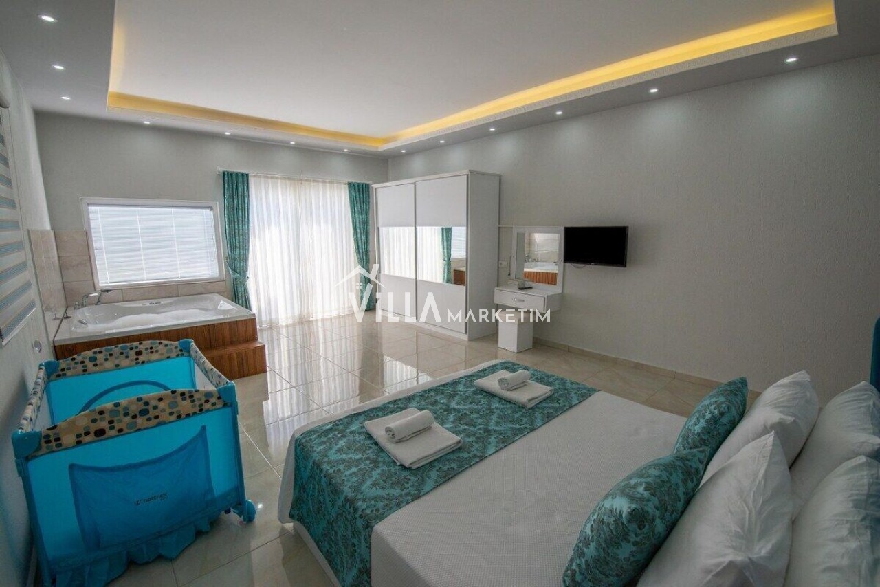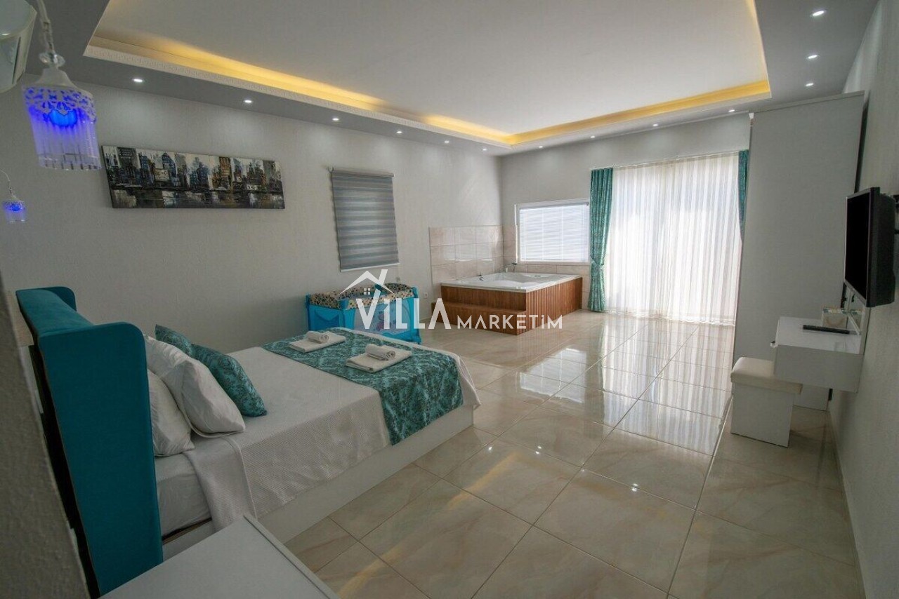 - Yatak Odası: 1 adet çift kişilik yatak, Jakuzi, makyaj masası, elbise dolabı, komidin, klima, banyo/W