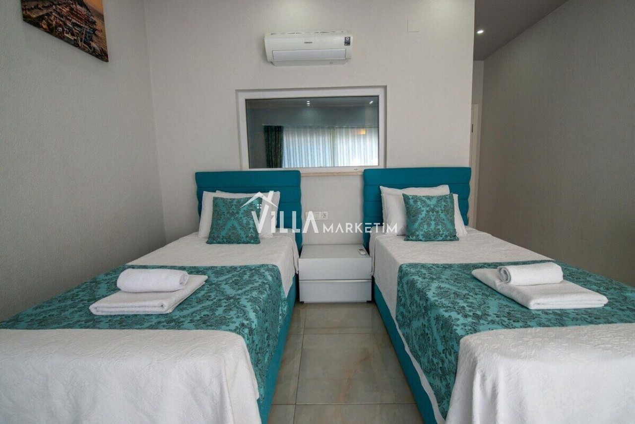 - Yatak Odası: 2 tek kişilik yatak, makyaj masası, elbise dolabı, komidin, klima, banyo/WC