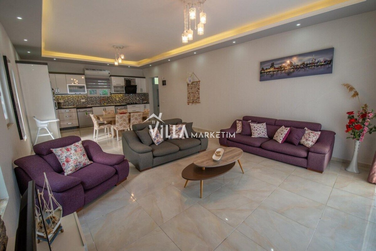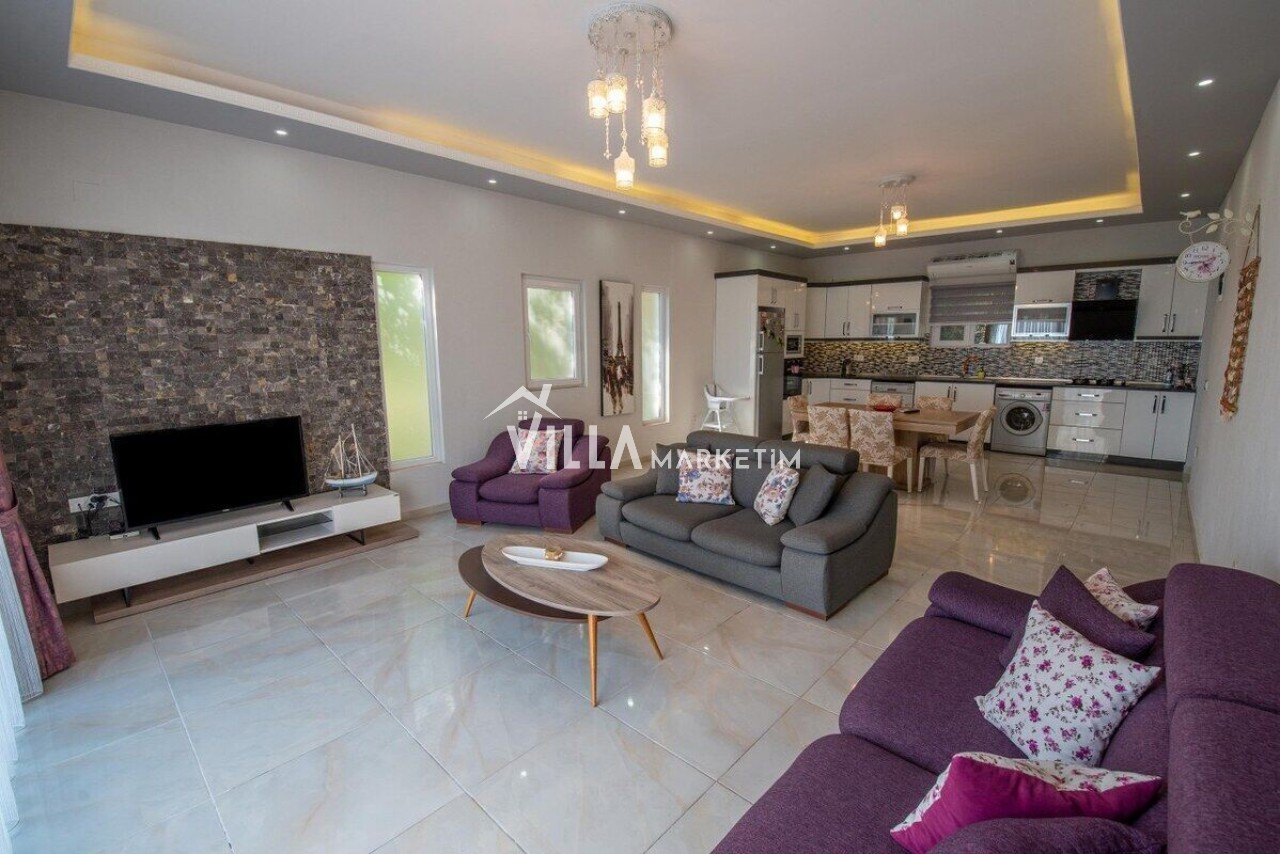 Salon: Oturma Grubu, klima, LCD Tv, 4 kişilik yemek masası, ütü, ütü masası, uydu alıcısı, internet ve terasa çıkış bulunmaktadır.