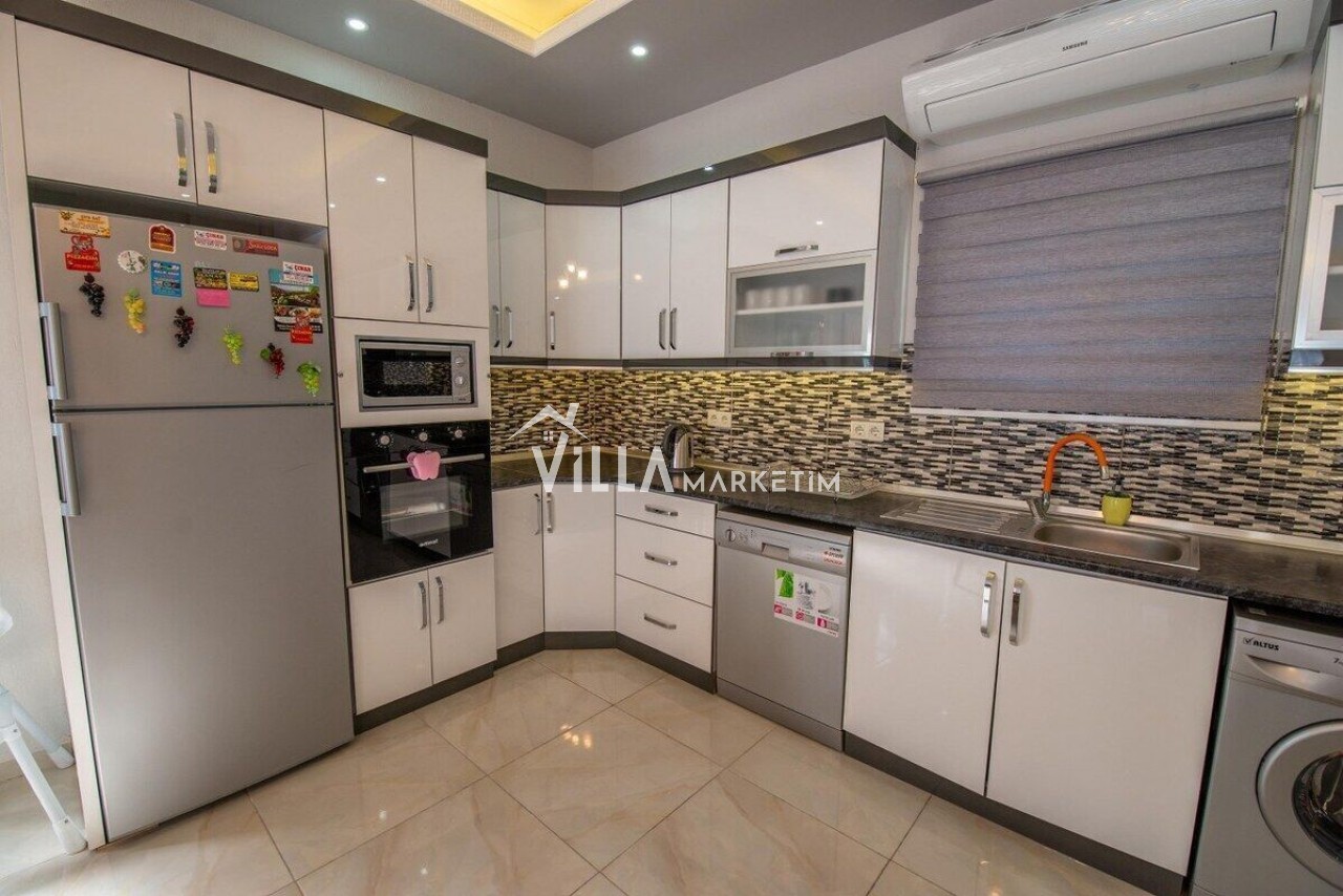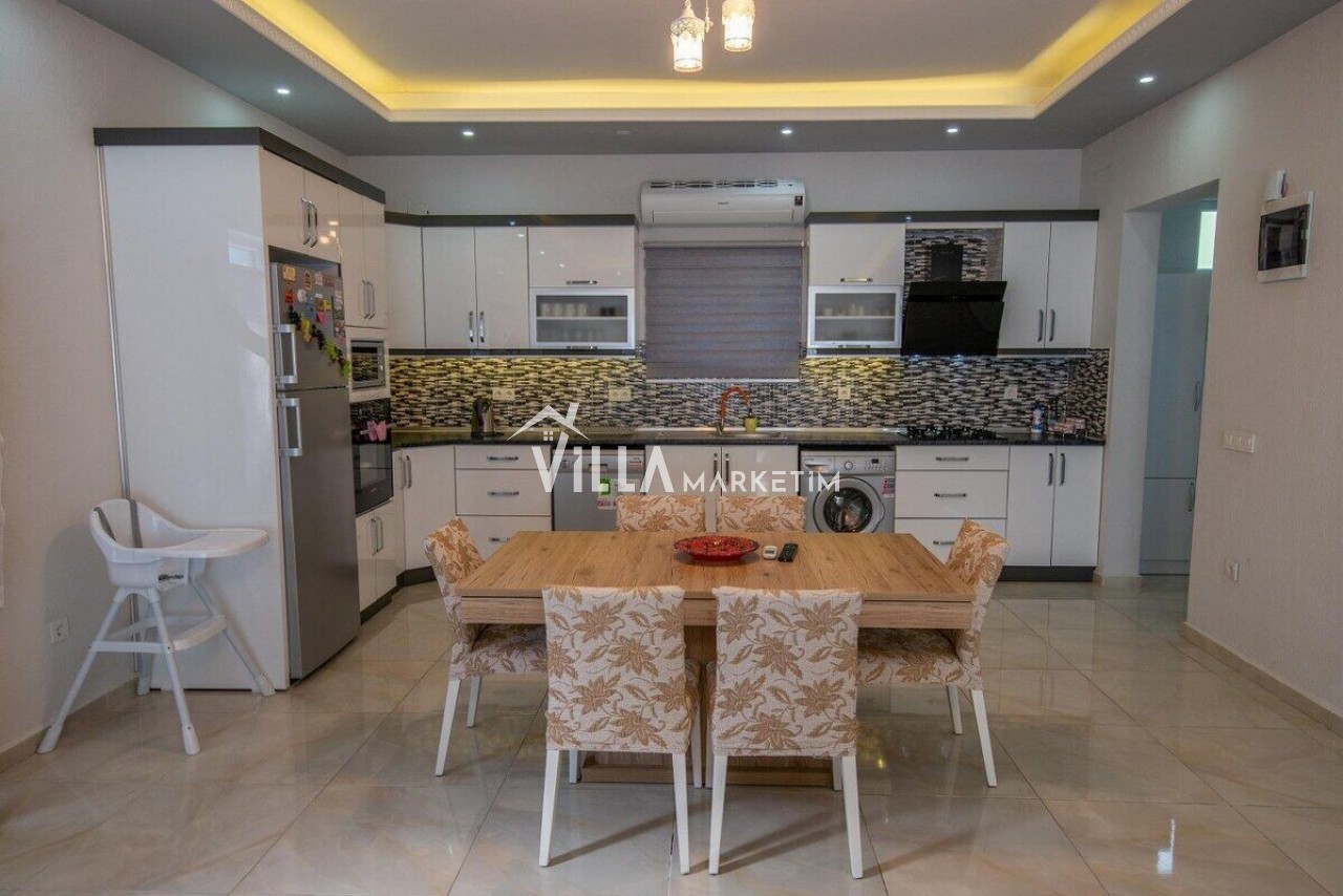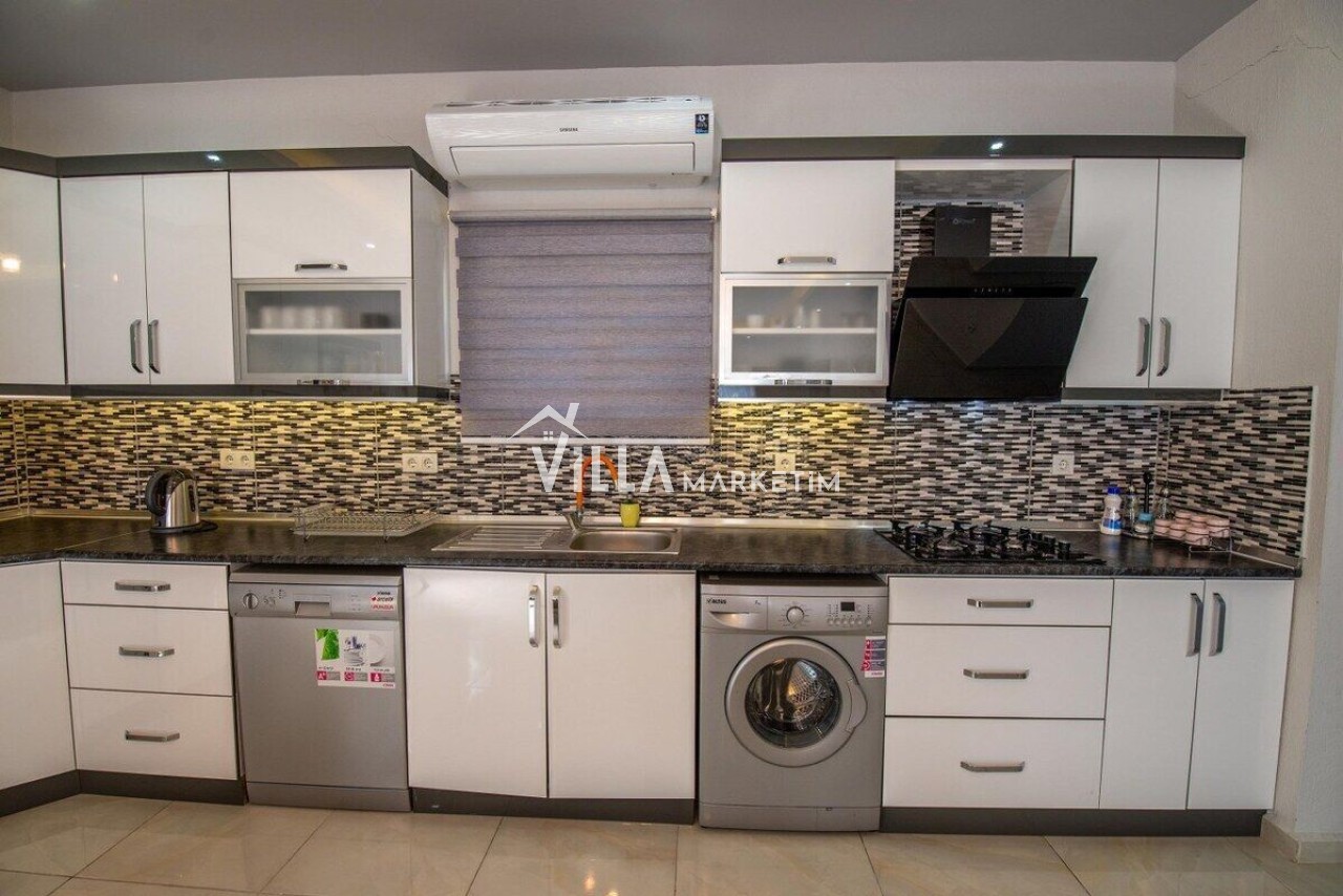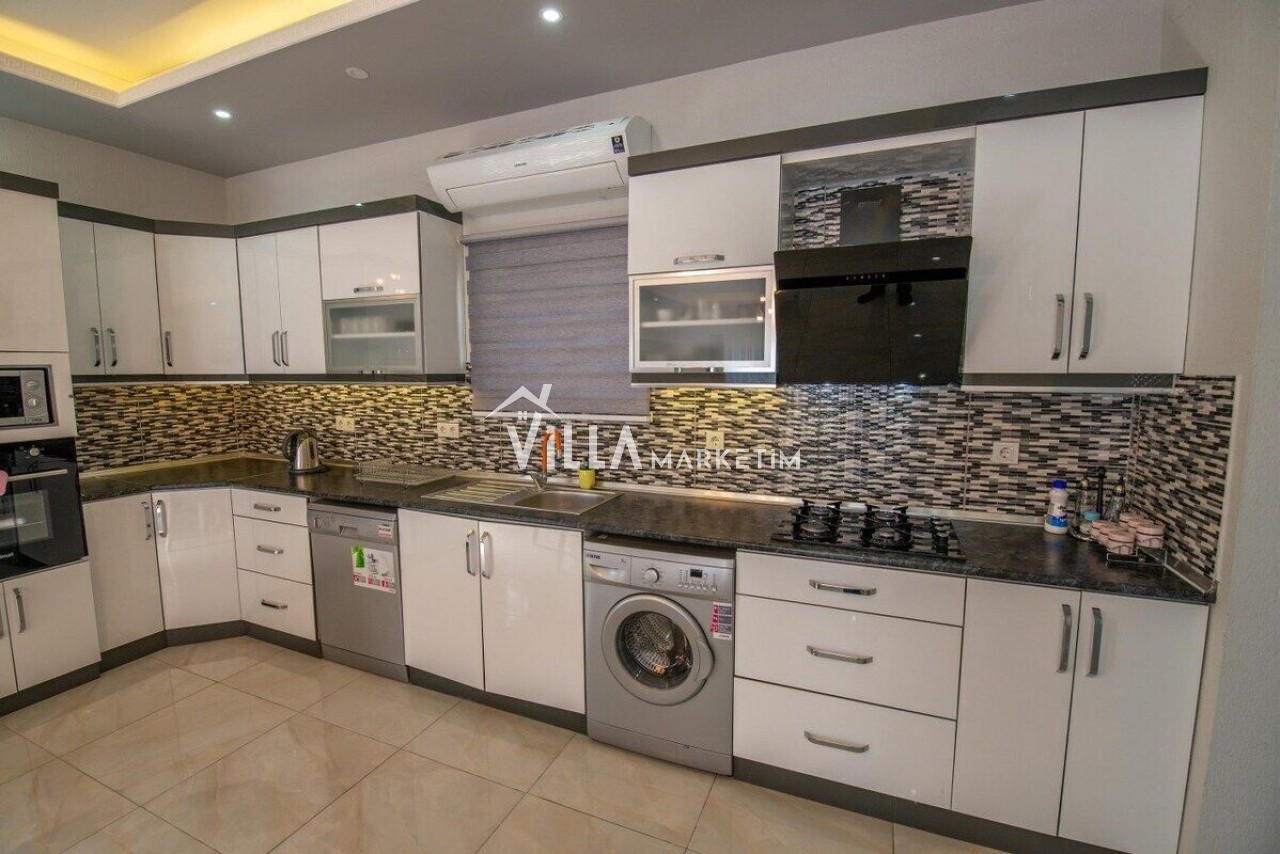 Mutfak: Amerikan Mutfak, buzdolabı, bulaşık makinesi, kahve makinesi, çamaşır makinesi, fırın, 4’lü ocak, mutfak araç gereçleri (tabak&bardaklar, tencere&tavalar vb.), kettle(çaycı) ve 4 kişilik yemek takımı bulunmaktadır.