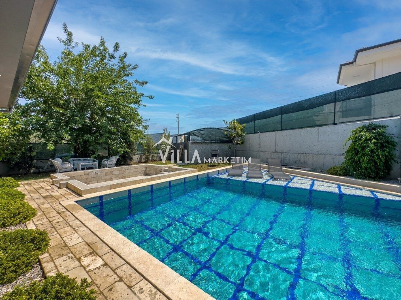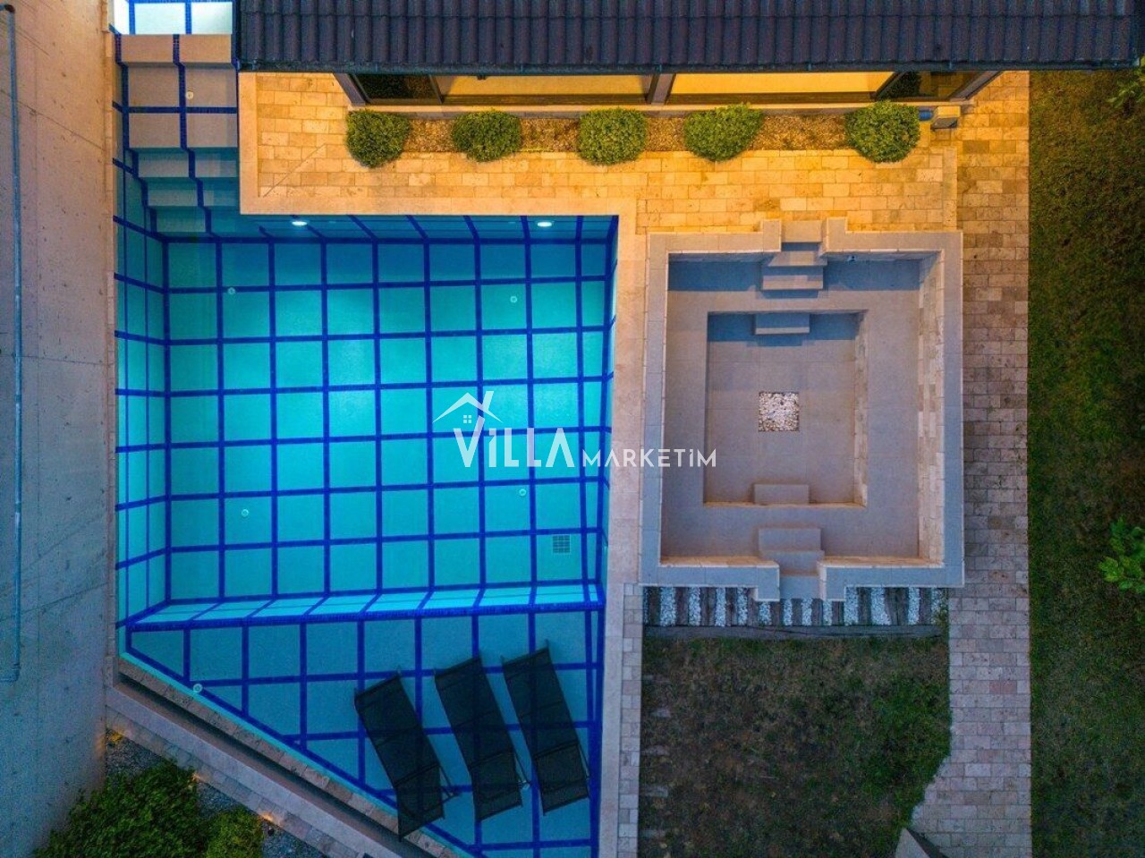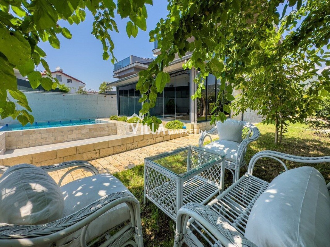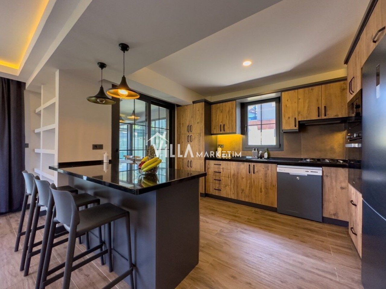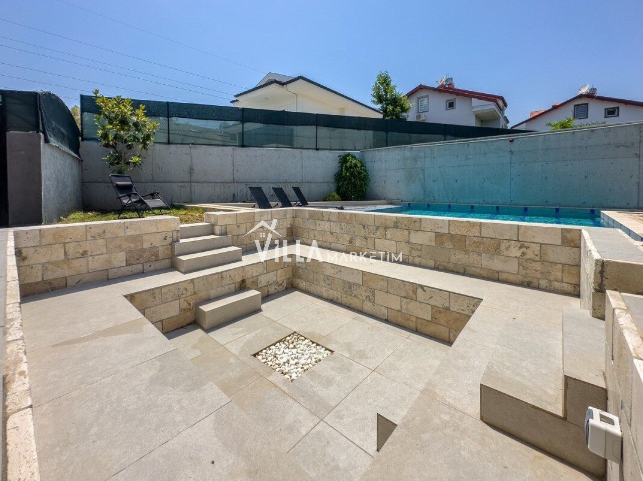 Özel Bahçe : Özel bahçede özel yüzme havuzu, şezlong, güneş şemsiyesi, bahçe oturma grubu, bahçe yemek masası, mutfak tezgahı, TV ve taş barbekü bulunmaktadır.