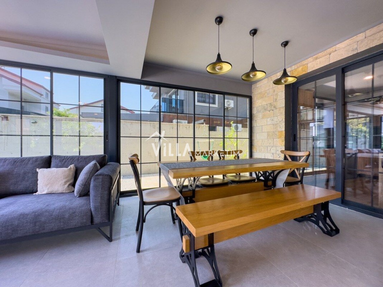 Toplam 4 yatak odasından oluşmuş, 8 kişi konaklama kapasitesine sahiptir. Geniş aileler ve kalabalık arkadaş grupları için oldukça idealdir. Oldukça şık ve modern bir şekilde döşenmiş olan villamızda misafirlerimiz için herşey düşünülmüştür. Havuz terasında bulunan şezlonglarda güneşlenebilir, bahçe masasında muhteşem yemekler yiyebilir, salıncakta sallanıp keyifli dakikalar geçirebilirsiniz.