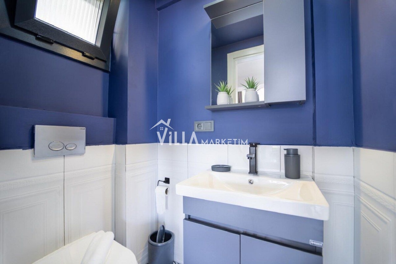 Mutfak : Modern Amerikan mutfak içerisinde buzdoplabı, bulaşık makinesi, tost makinesi, fırın, kahve makinesi, filtre kahve makinesi, çaycı, mikrodalga fırın, 4’lü ocak seti ve mutfak araç gereçleri (tabak&bardaklar, tenvere&tavalar vb.) yer almaktadır.
