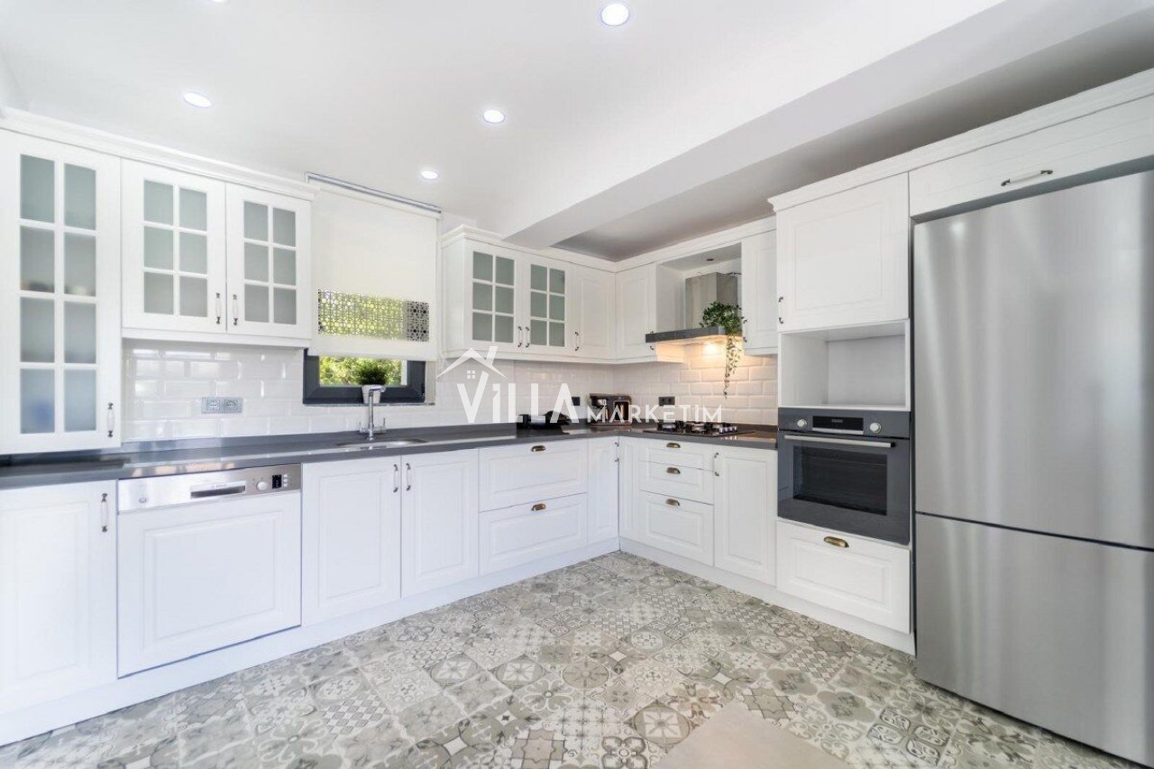 Mutfak : Modern Amerikan mutfak içerisinde buzdoplabı, bulaşık makinesi, tost makinesi, fırın, kahve makinesi, filtre kahve makinesi, çaycı, mikrodalga fırın, 4’lü ocak seti ve mutfak araç gereçleri (tabak&bardaklar, tenvere&tavalar vb.) yer almaktadır.