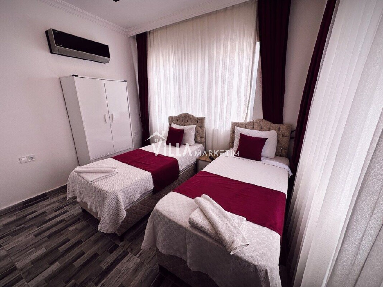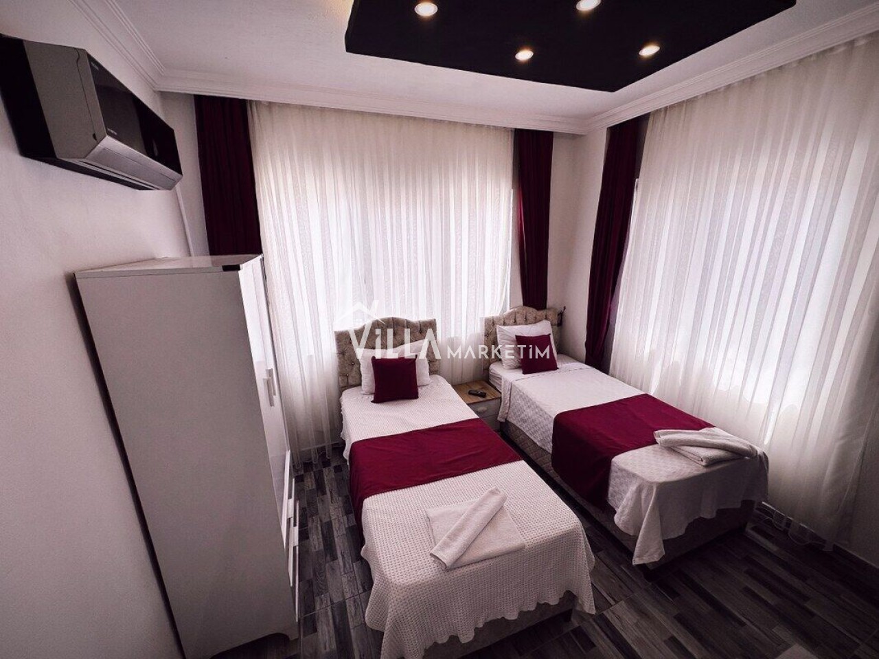 2. Yatak Odası : Klimalı, 2 adet tek kişilik yatak, komodin, elbise dolabı, klima, banyo&WC almaktadır.