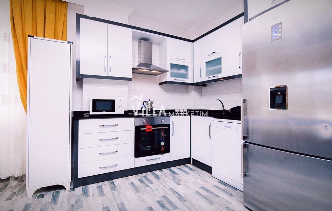 Mutfak : Amerikan mutfak mevcuttur. İçerisinde buzdolabı, bulaşık makinesi, tost makinesi, ankastre 4’lü ocak, ankastre fırın, çay makinesi, çaydanlık, mikrodalga fırın, tava tencere takımı, yemek takımı, çatal bıçak takımı, su ve çay bardağı takımları yer almaktadır.