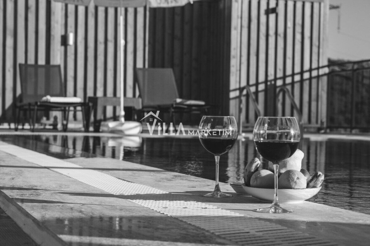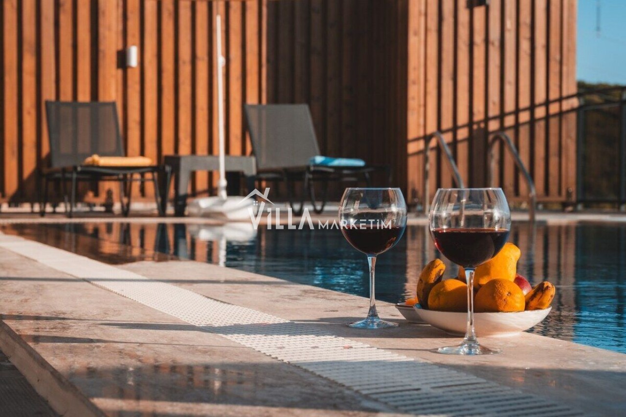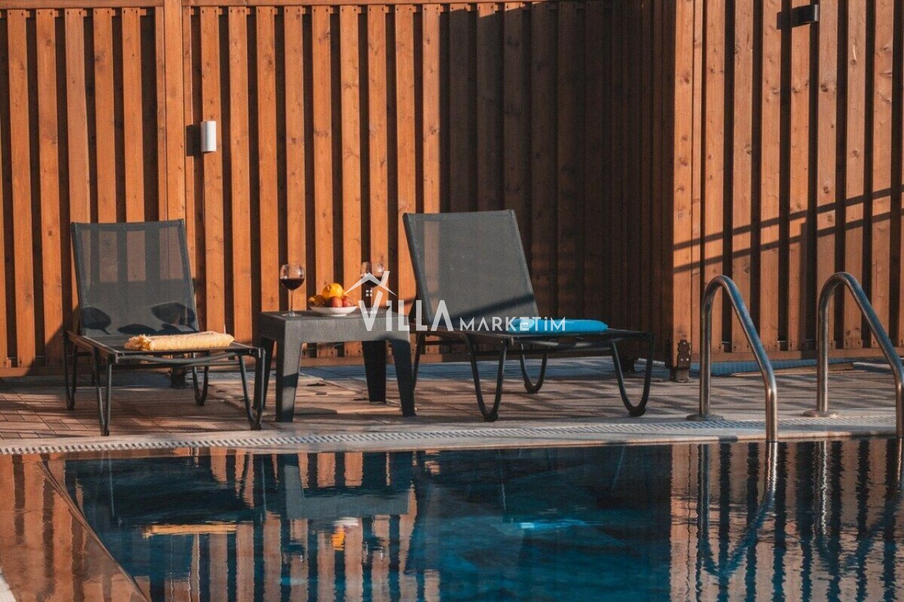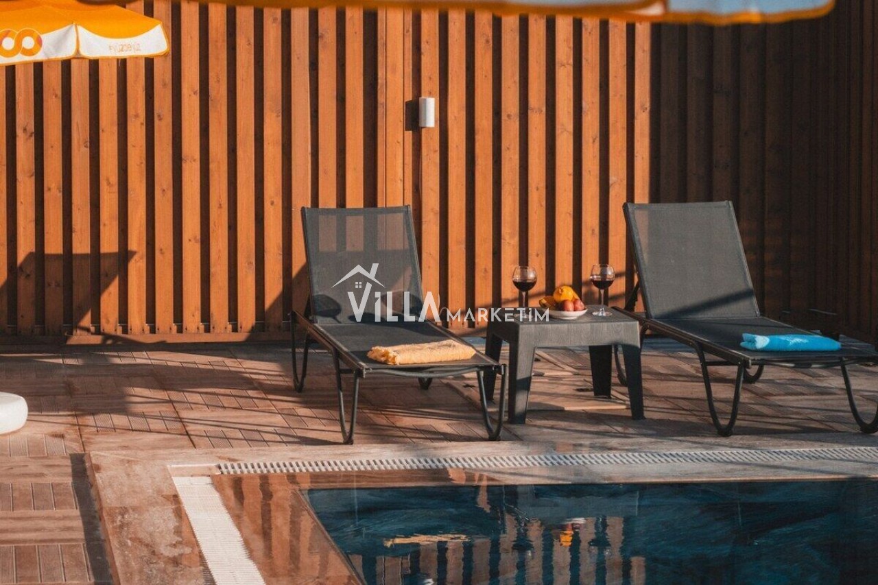 NOT : Sitemizde bulunan villa resimleri, görüntüyü ekrana sığdırmak maksadıyla 12-18 mm ’Geniş Açılı Lens’ ile çekilmektedir. Bu sebeple resimlerdeki objeler, gerçeğinden daha büyük olarak gözükebilmektedir.