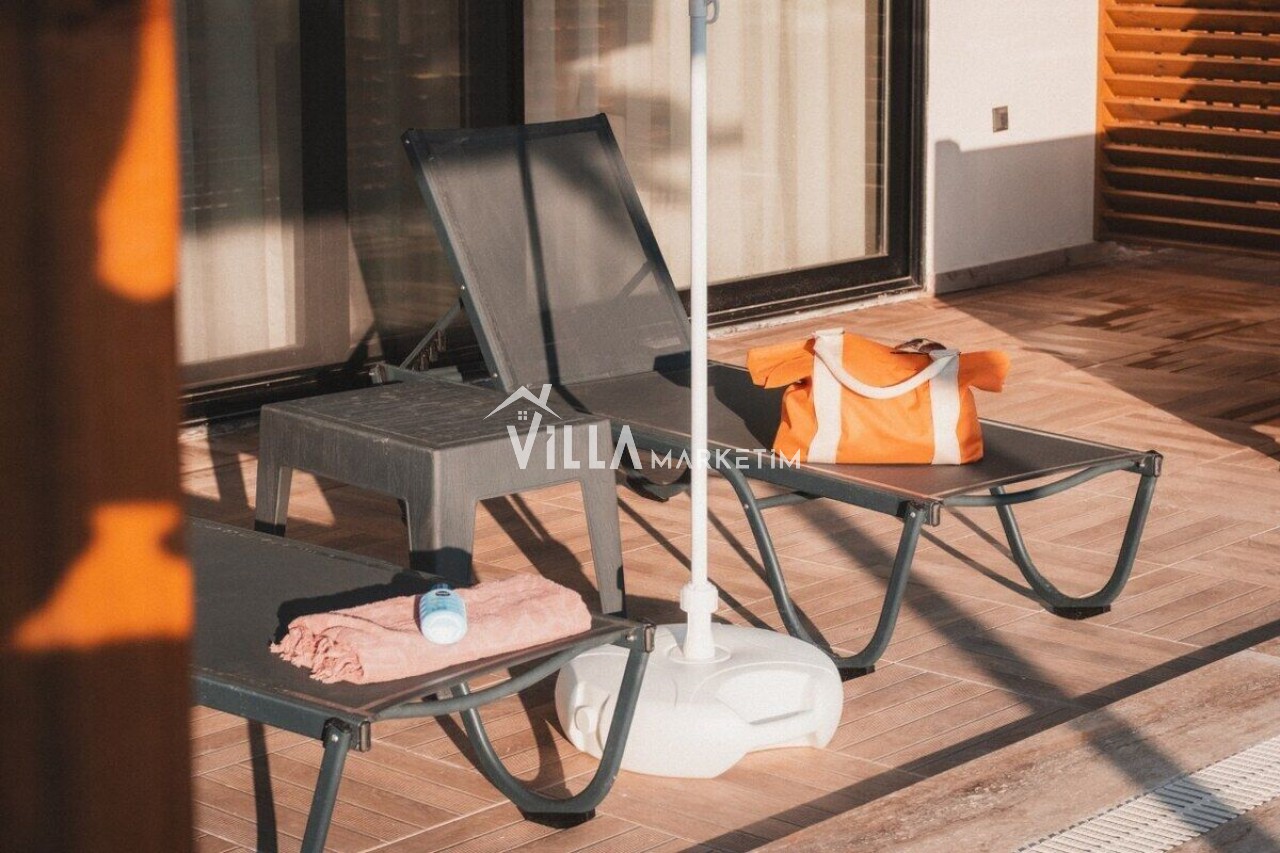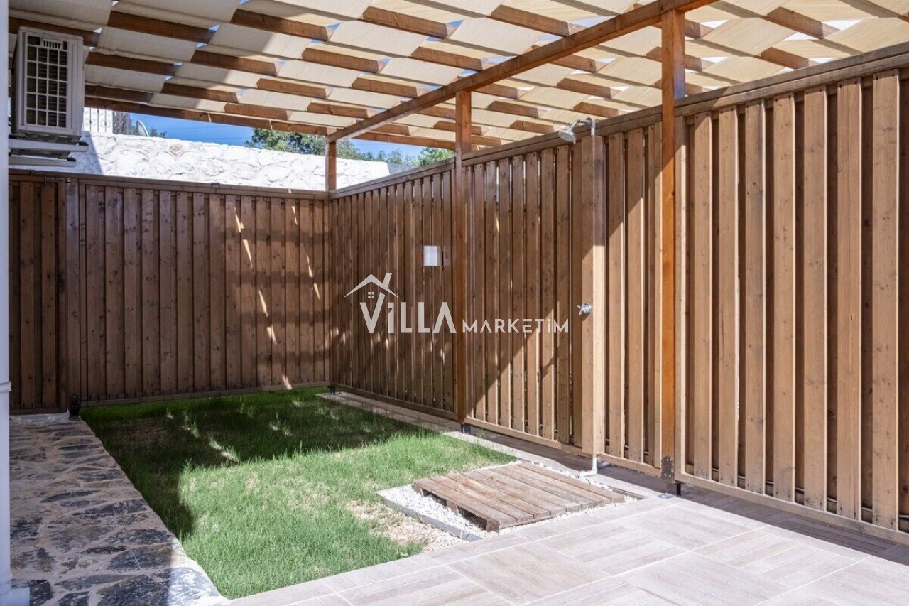 Bahçe : Özel bahçe içerisinde, şezlonglar, çardak, yemek masası ve sandalyeleri, duş ve barbekü bulunmaktadır.