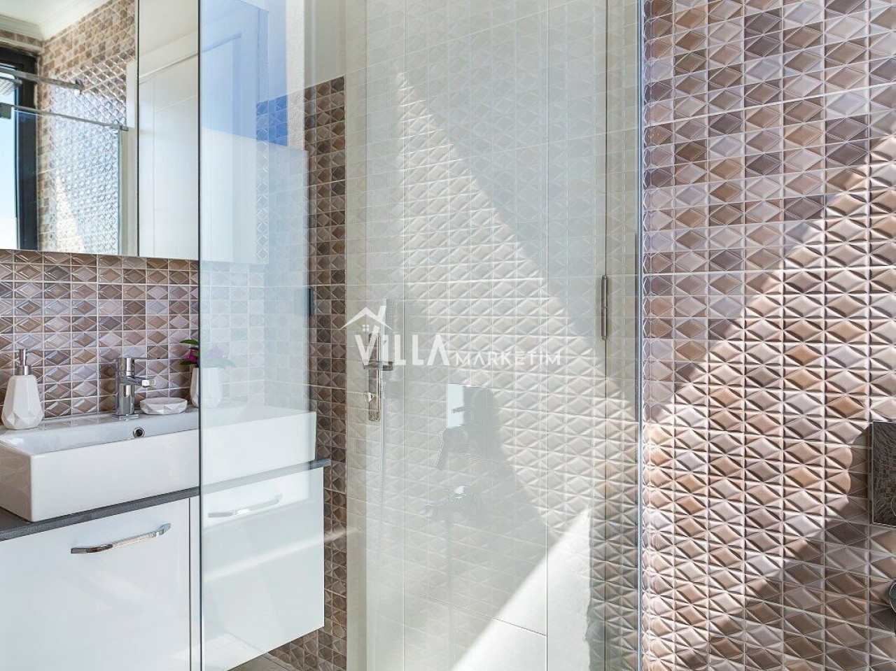 Bahçe : Özel bahçe, özel yüzme havuzu, havuz terası, şezlonglar, güneş şemsiyesi, oturma grubu, kamelya, barbekü, duş, masa ve sandalyeler bulunmaktadır.