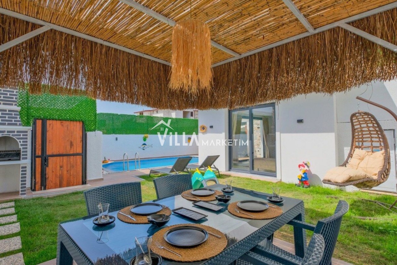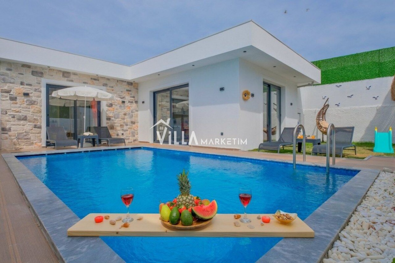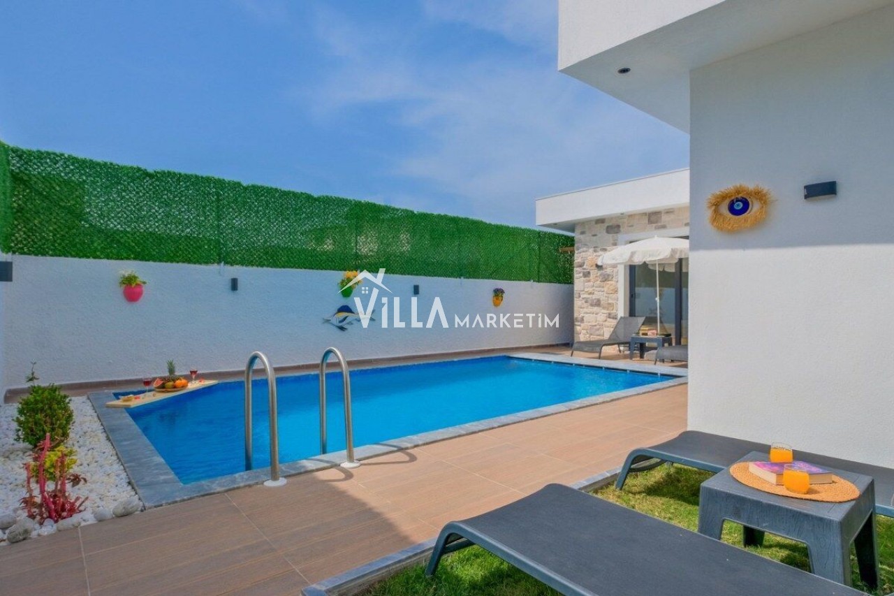 Not : Doğa ile iç içe konuma sahip olan tüm villalarımızda düzenli olarak ilaçlama yapılır. Buna rağmen çevrede haşere vb. bulunma ihtimali vardır. Havuzu korunaklı villalarımızda kesinlikle %100 görünmememe garantisi vermemekteyiz. Bu villalarımızda her zaman %10 sakınma payı mevcuttur. Sitemizde bulunan villa fotoğraflarının, görüntüyü ekrana sığdırmak için ’Geniş Açılı Lens’ ile çekilmektedir. Bu sebeple resimlerdeki objeler, gerçek boyutlarından daha büyük veya küçük görünebilmekte.