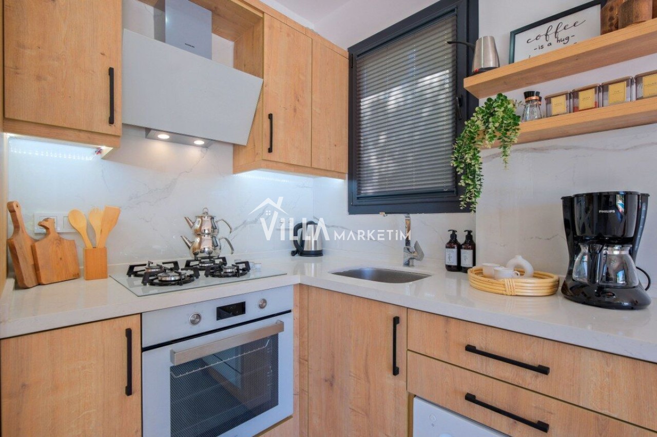 Mutfak : Modern Amerikan mutfaktır. Fırın, ankastre 4’lü ocak, bozdolabı, bulaşık makinesi, 4 kişilik kaşık çatal seti, su ısıtıcısı(kettle), türk kahve makinesi, filtre kahve makinesi, tencere tava takımı ve bardaklar bulunmaktadır.