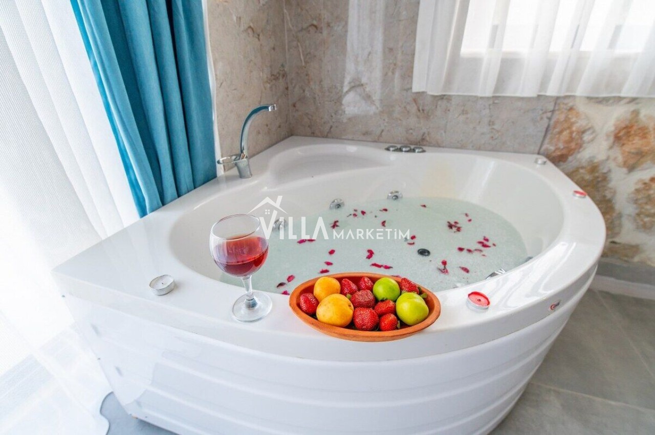 Aynı zamanda Villa Stone House, balayı çiftleri için de eşsiz bir tatil alternatifi sunmaktadır. Jakuzili yatak odası, çiftlerin romantik anlar yaşayabileceği bir mekan olarak tasarlanmıştır. Bu özel alan, yeni evli çiftlerin huzur dolu dakikalar geçirmesine imkân tanırken, havuzun sunduğu seçeneklerle bir araya geldiğinde unutulmaz anılar oluşturma potansiyelini taşımaktadır. Suyun keyfini çıkarmak isteyenler, jakuzide dinlenirken romantik bir atmosferde geçirecekleri anların hayalini kurabilirler.