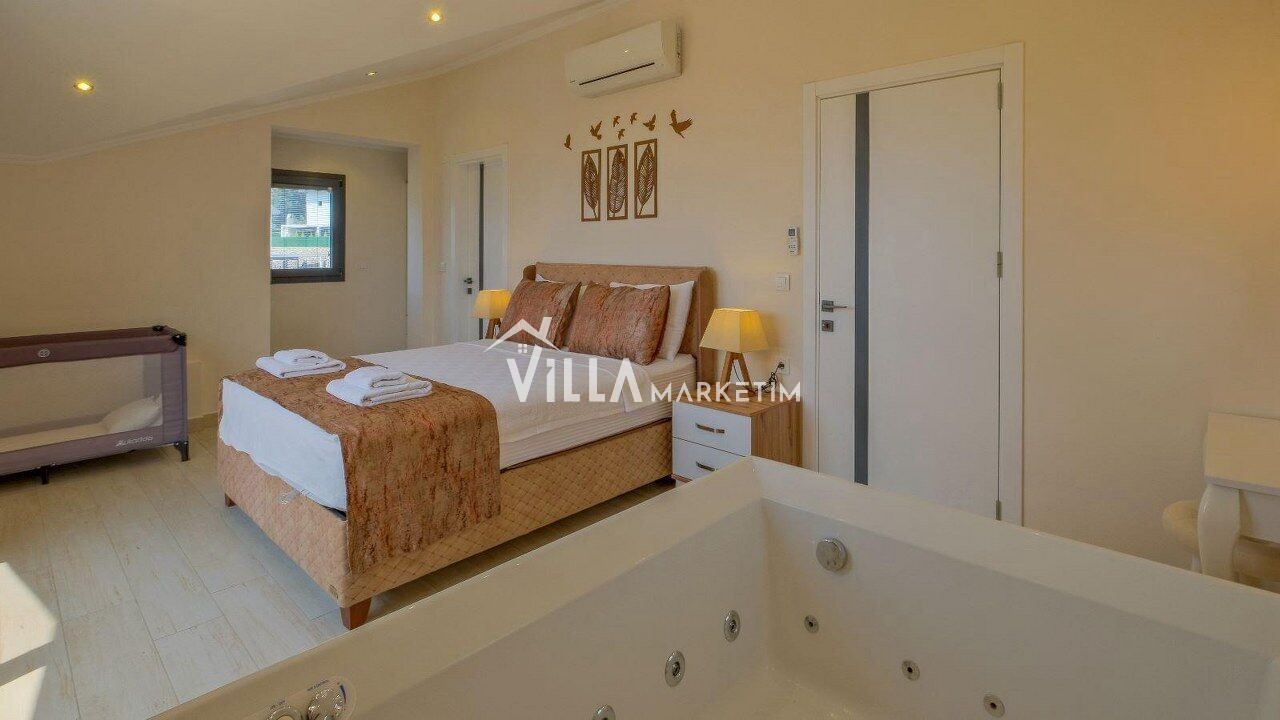 Yatak Odası : 1 adet çift kişilik yatak, komodin, makyaj masası ve ayna, klima, giyinme dolabı, jakuzi ve oda içerisinde özel banyo/WC bulunmaktadır. (Çatı Katı)