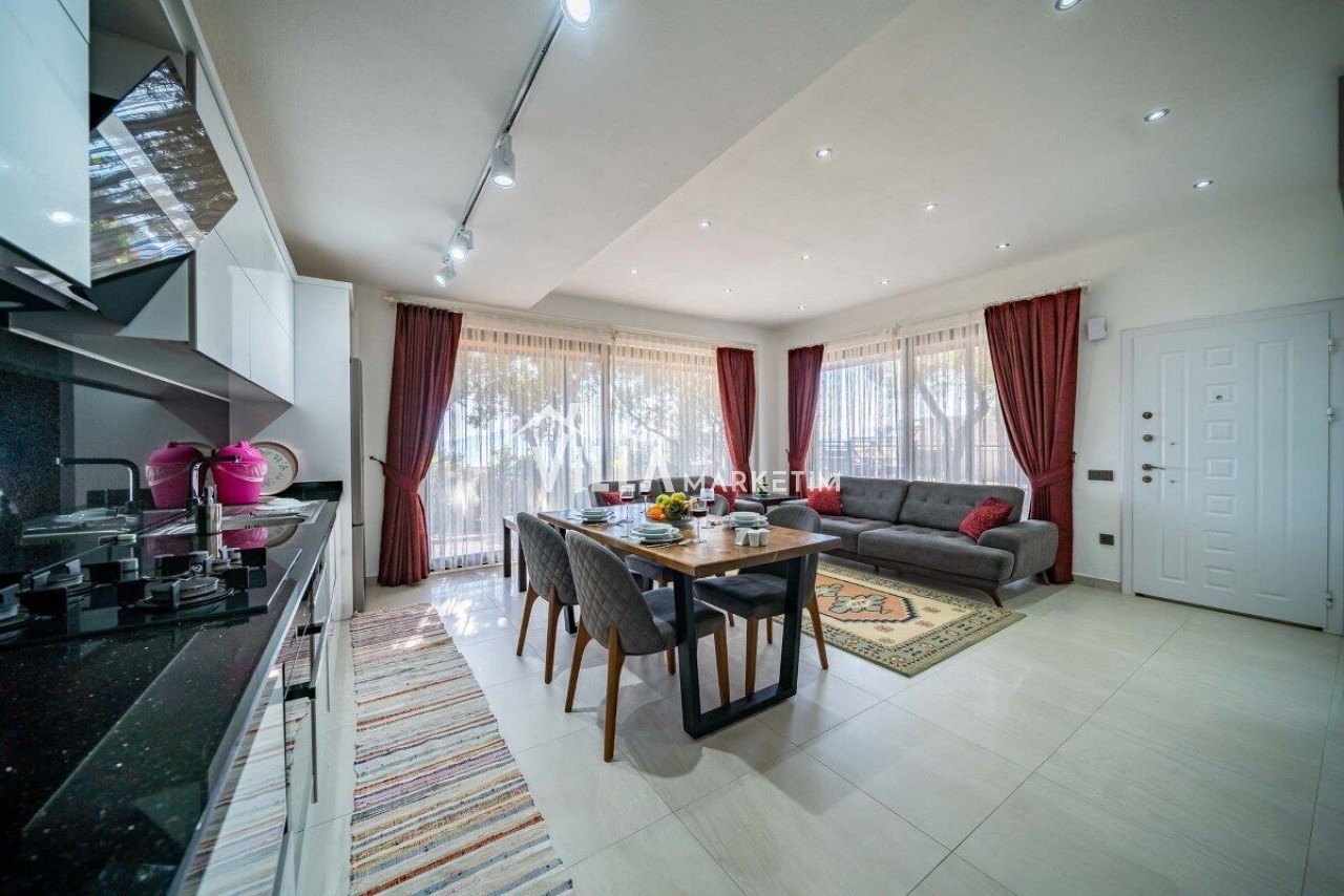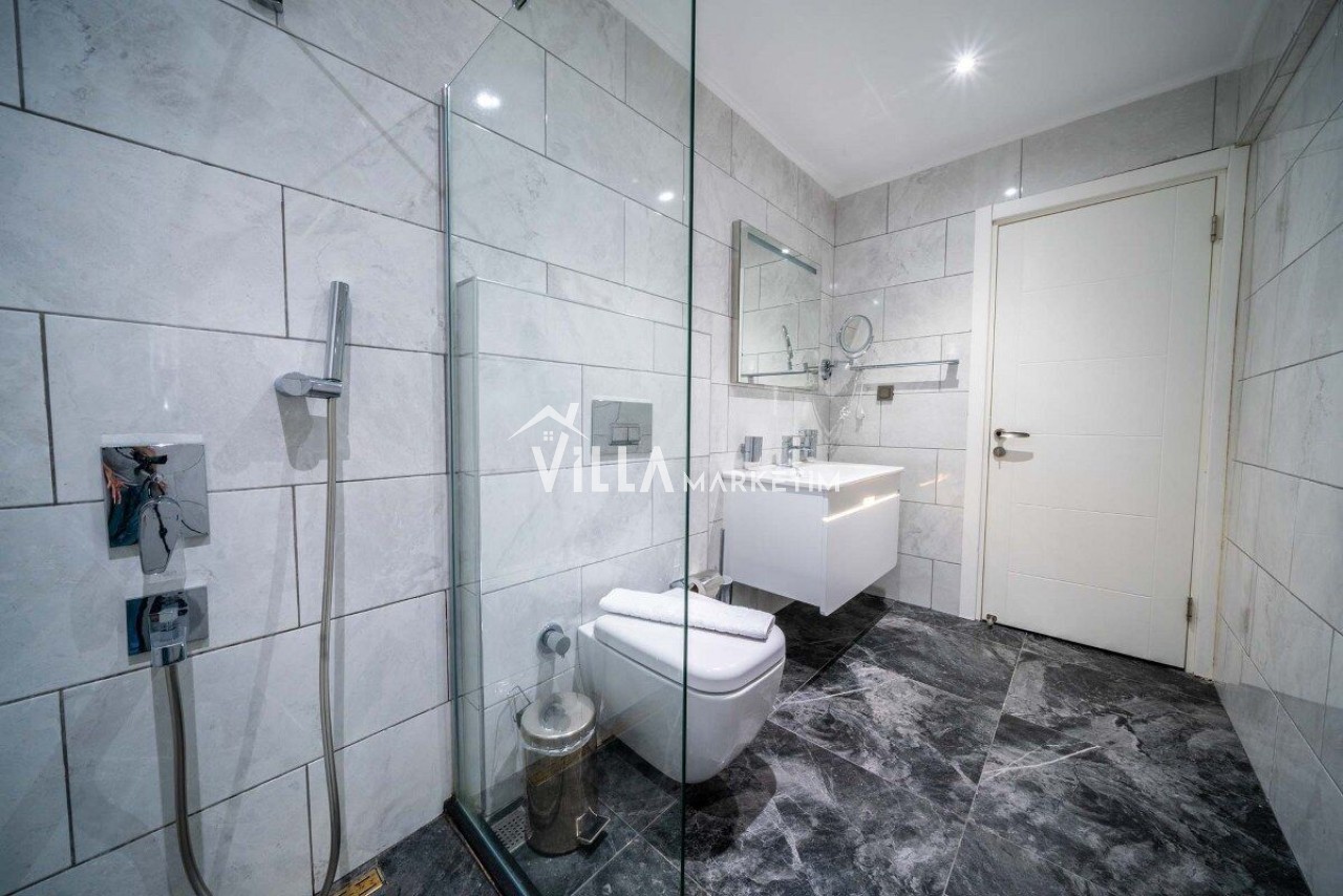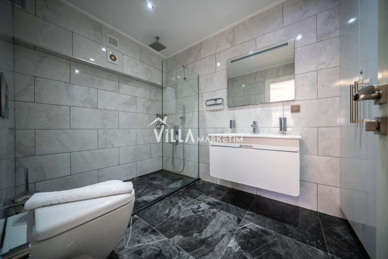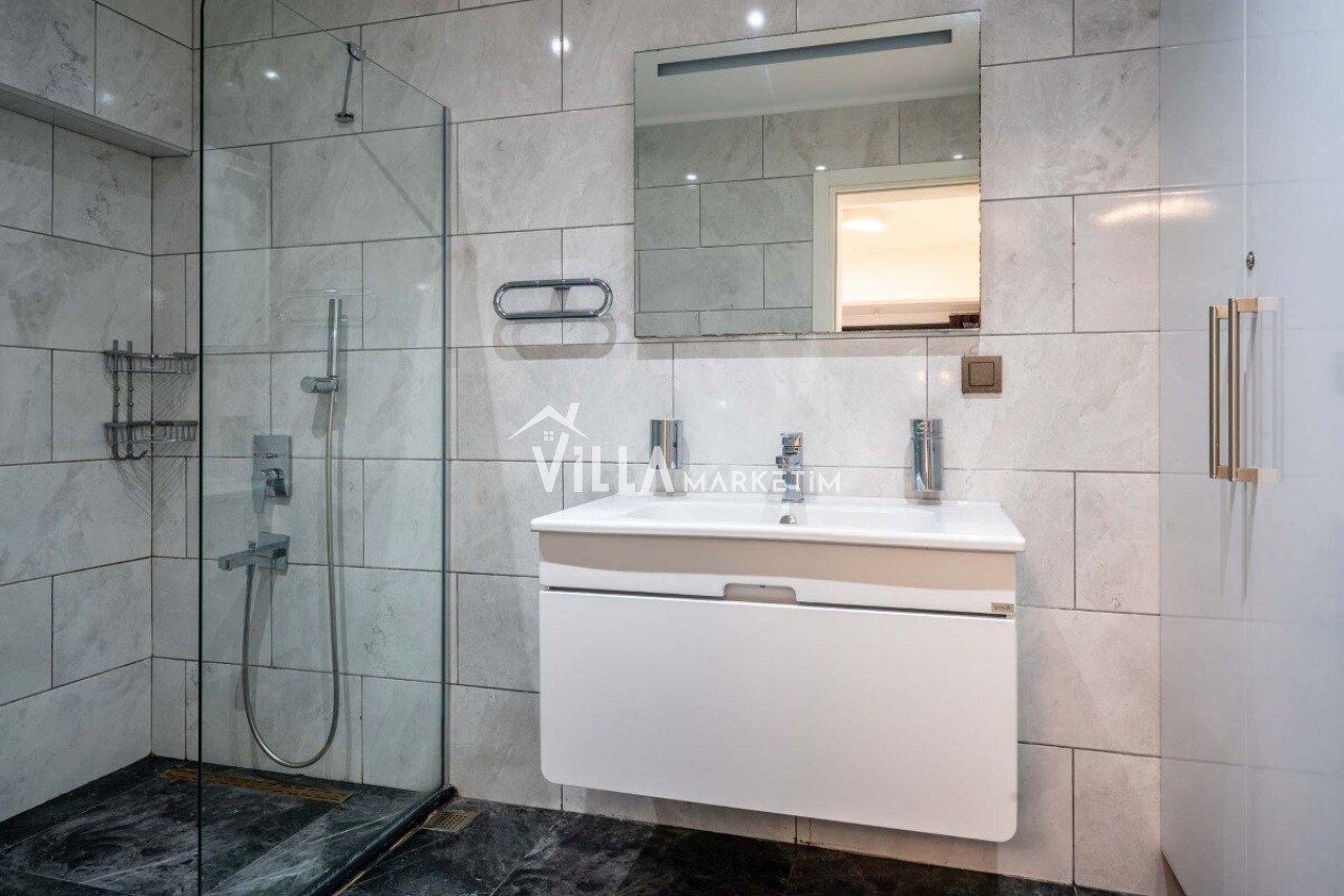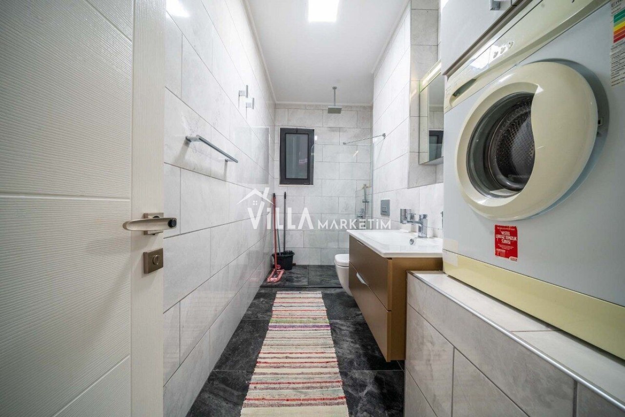 Mutfak: Modern ve tam donanımlı villamızın Amerikan mutfağı içerisinde buzdolabı, bulaşık makinesi, ocak, fırın, mikrodalga fırın, su ısıtıcısı, filtre kahve makinesi, yemek masası, yemek takımı ve yemek pişirme araç gereleri yer almaktadır.
