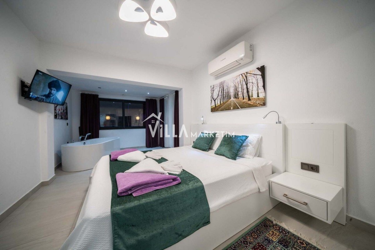2. Yatak Odası : Bir adet çift kişilik yatak, komodin, elbise dolabı, makyaj masası, jakuzi, klima, banyo ve tuvalet bulunmaktadır.