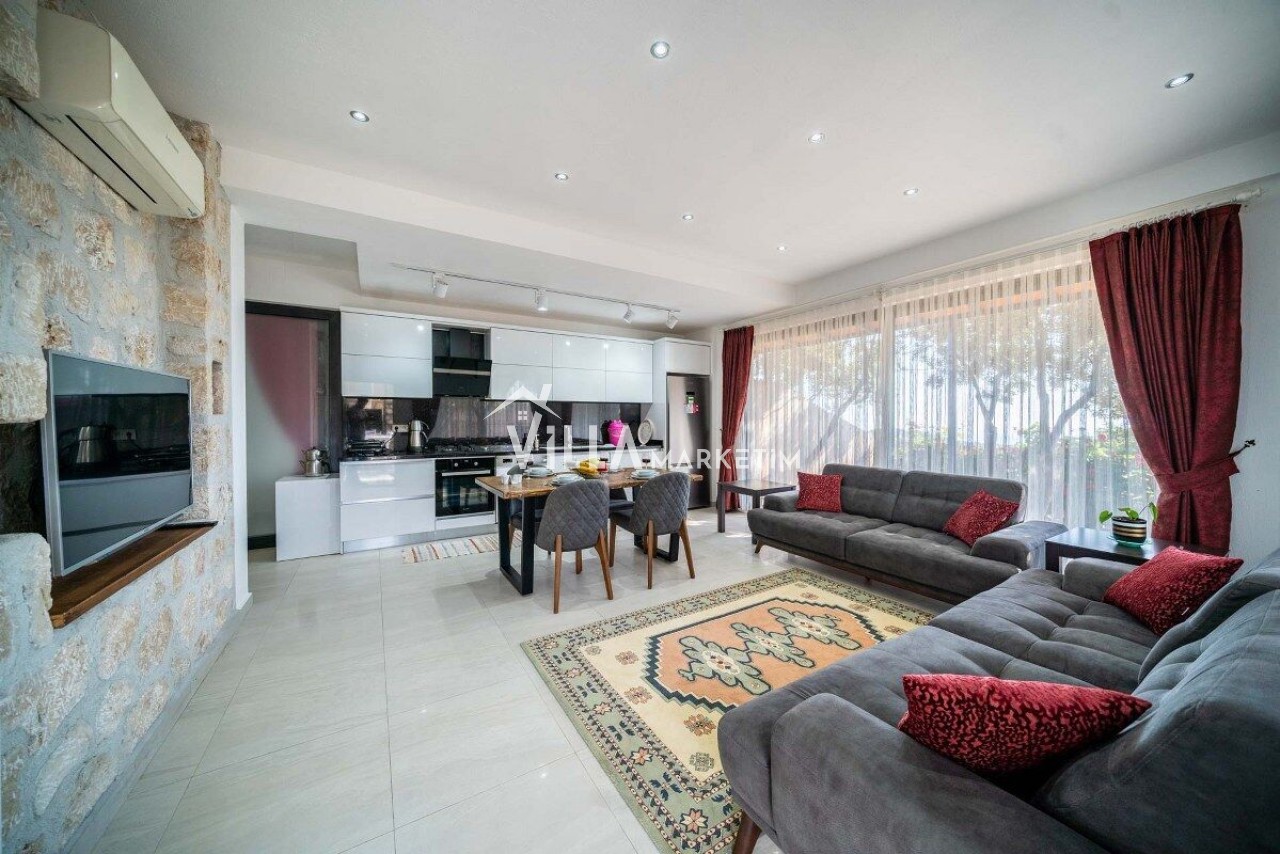 Salon: Sevdikleriniz ile birlikte huzurlu ve eğlenceli vakitler geçirebileceğiniz manzaralı salonda konforlu oturma grubu, TV, DVD oynatıcı, uydu alıcısı, klima yer almaktadır. Salondan havuz terasına geçiş vardır.
