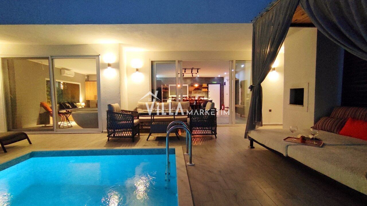 Ekstralar : Misafirlere temiz bir şekilde teslim edilmektedir. Salon ve yatak odaları klimalıdır. Villa içerisinde internet için kablosuz internet WIFI ve iç havuzunda jakuzi özelliği ve villa bahçesinde hamak vardır. Özel otopark mevcuttur.