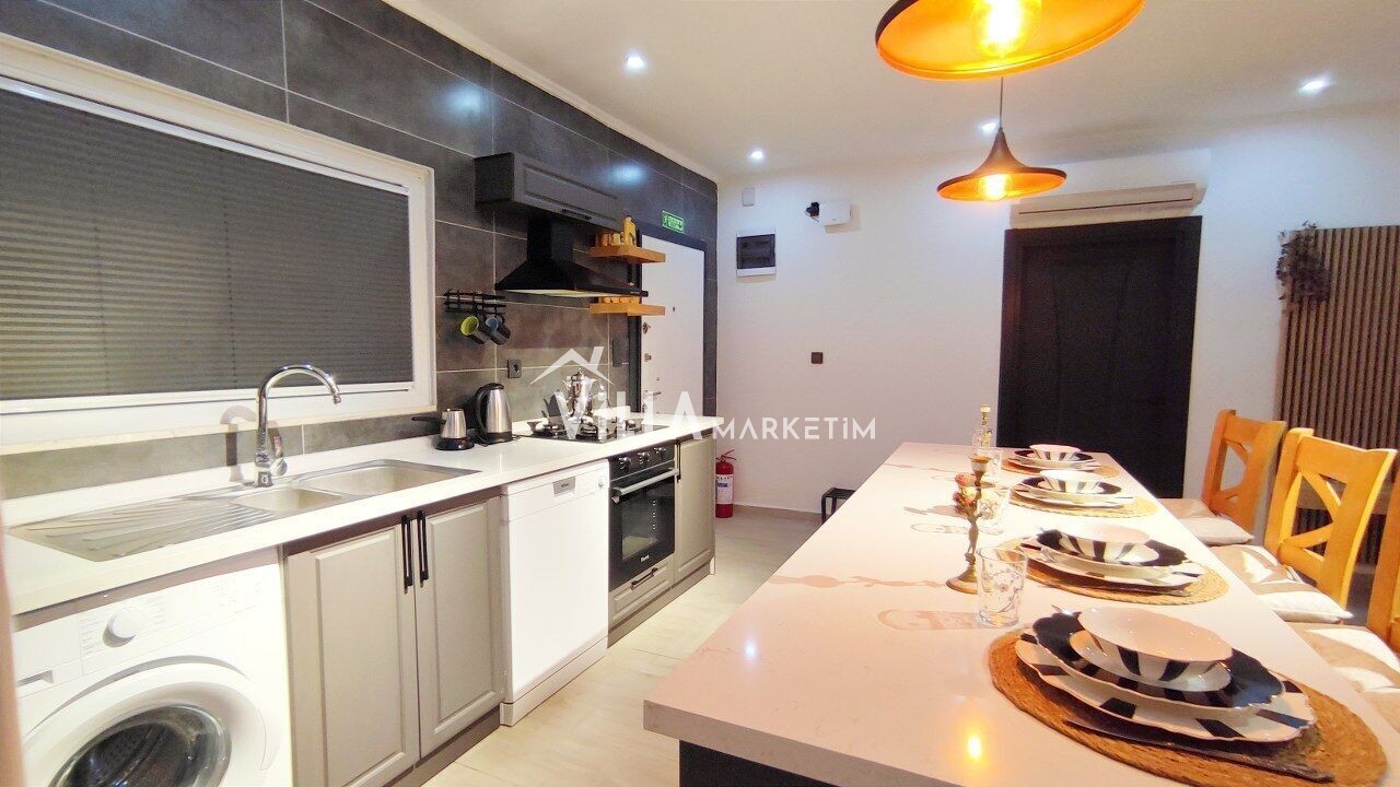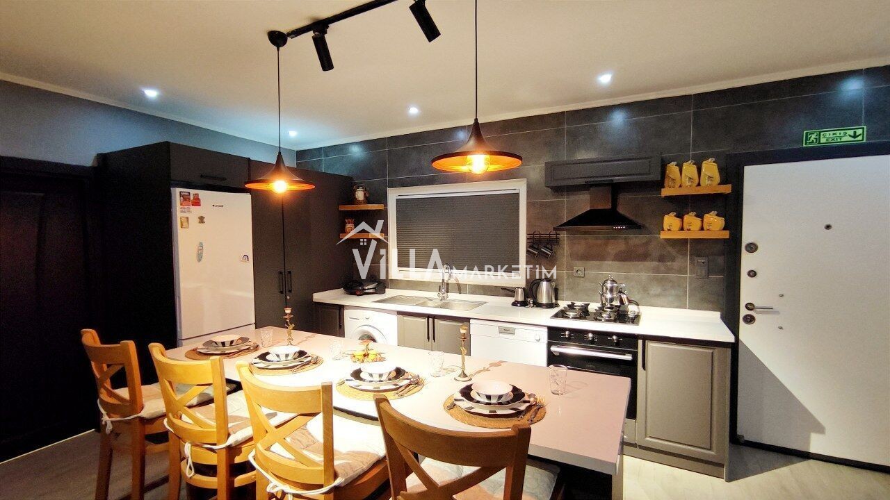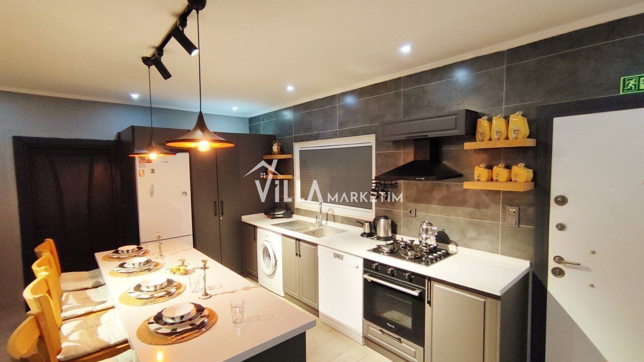 Mutfak : Modern Açık Amerikan mutfak, buzdolabı,çamaşır makinesi, ankastre fırın,dörtlü ocak, bulaşık makinesi, tost makinesi ,kahve makinesi, kettle, çatal, kaşık, bıçak, tencere ve tavalar , yemek takımı ,vb. olup tam donanımlıdır.