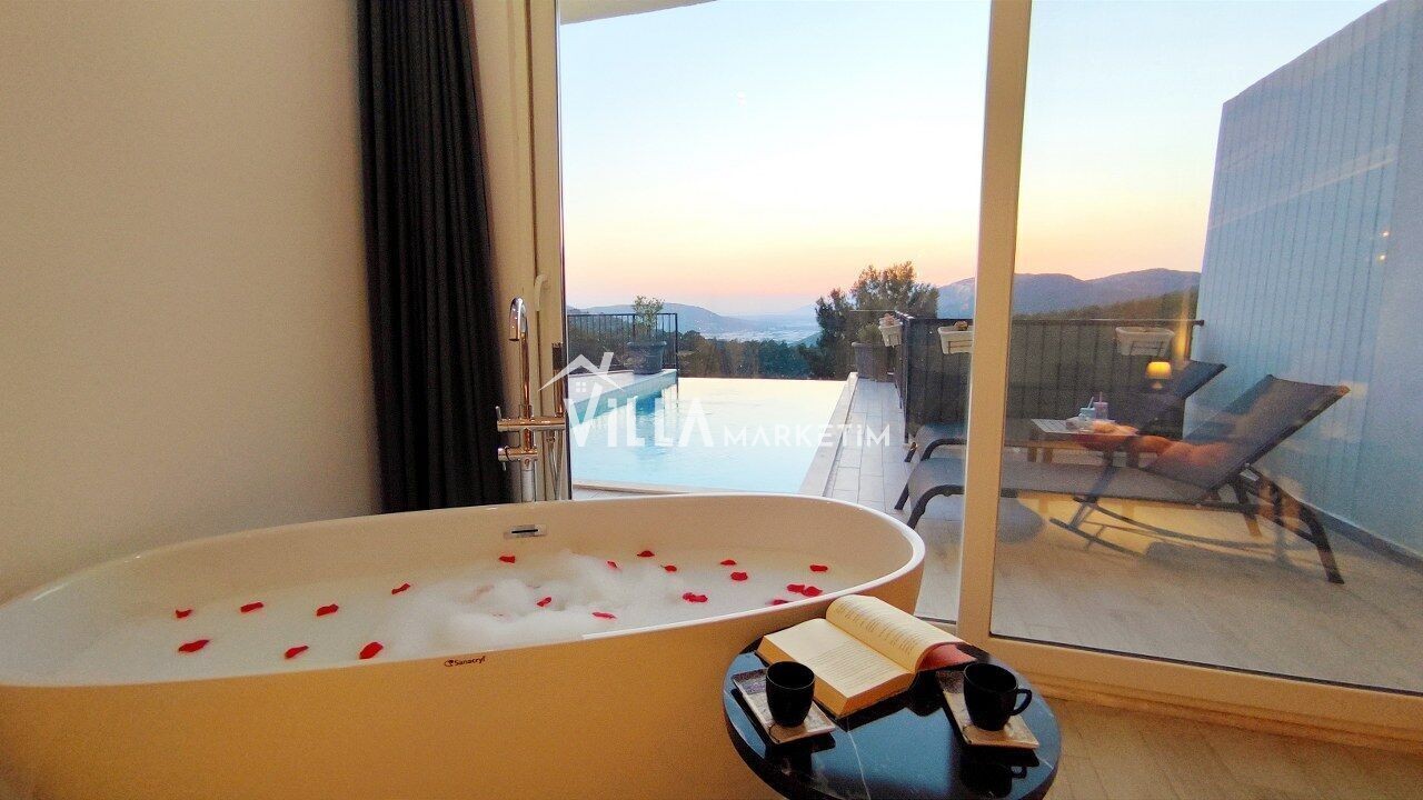 NOT : Sitemizde bulunan villa resimleri, görüntüyü ekrana sığdırmak maksadıyla 12-18 mm ’Geniş Açılı Lens’ ile çekilmektedir. Bu sebeple resimlerdeki objeler, gerçek boyutlarından daha büyük görünebilmektedir.