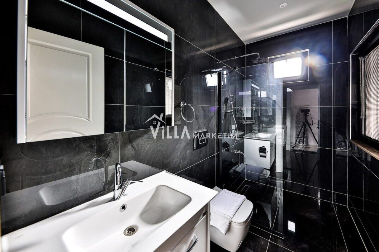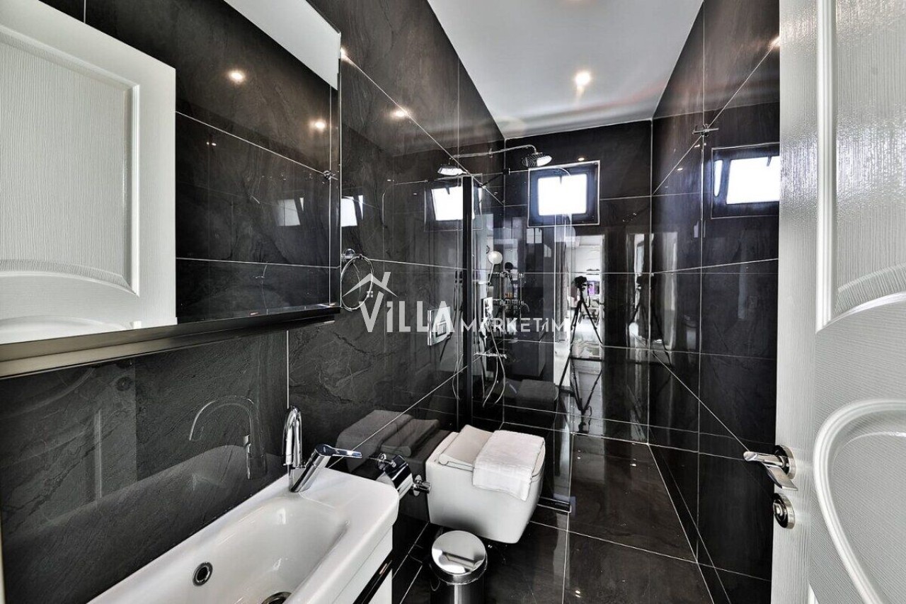 Bahçe: Villamızın geniş kullanım alanı bulunan bahçe katında özel yüzme havuzu, şezlonglar, güneş şemsiyesi, barbekü, bahçe masası ve sandalyeler bulunmaktadır.