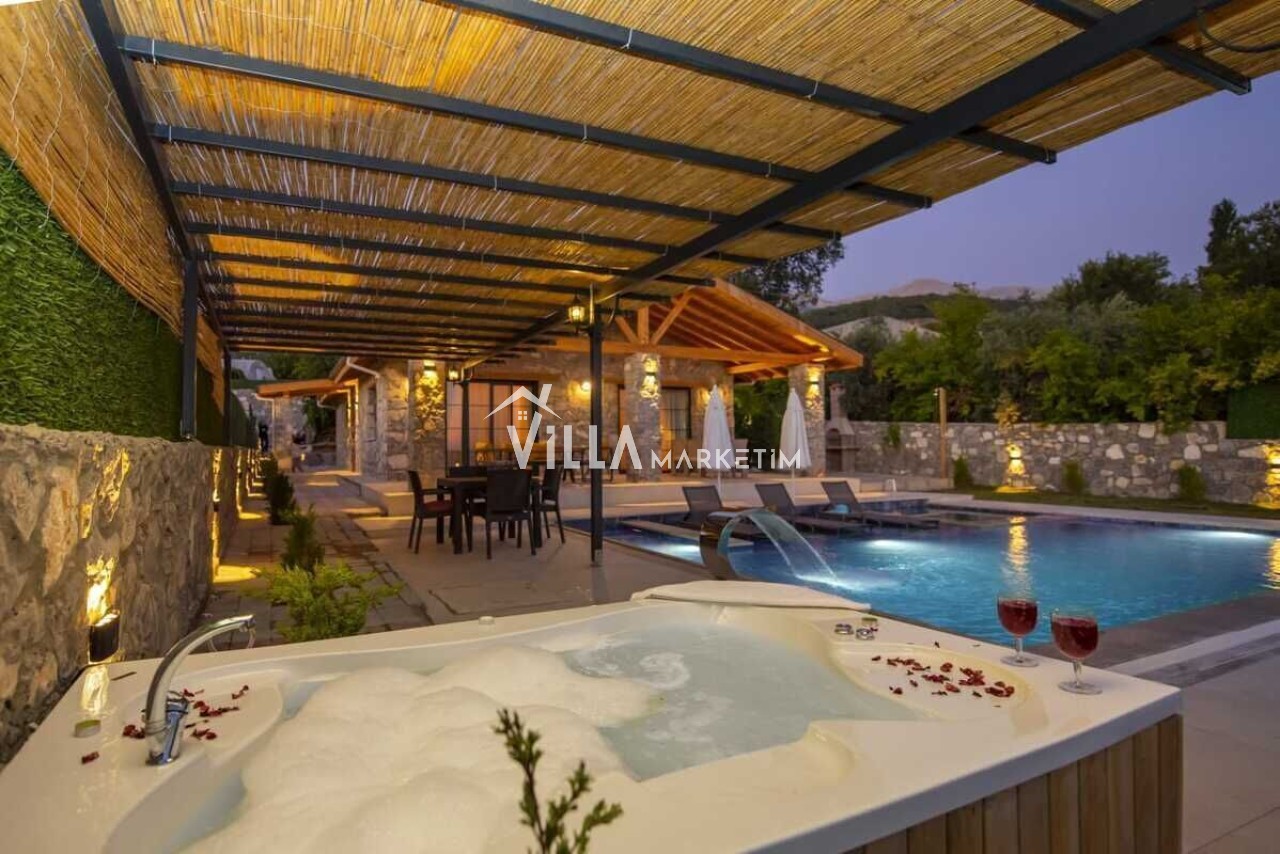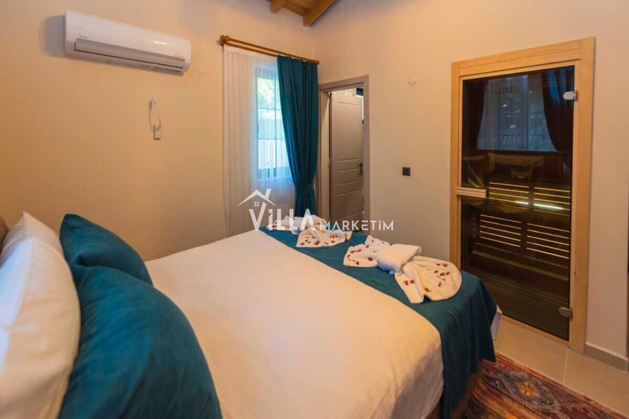 Seydikemer Yakaköyünde doğa içerisinde konumludur. 3 yatak odalı 6 kişi konaklama kapasitelidir. Korunaklı havuz terasına sahip özel havuzlu villamızın bahçe terasında açık hava jakuzisi yer almaktadır. İç ve bahçe tasarımıyla oldukça şık ve konforlu villamız geniş aileleler ve kalabalık arkadaş grupları için oldukça ideal saunalı ıkiralık tatil villasıdır.