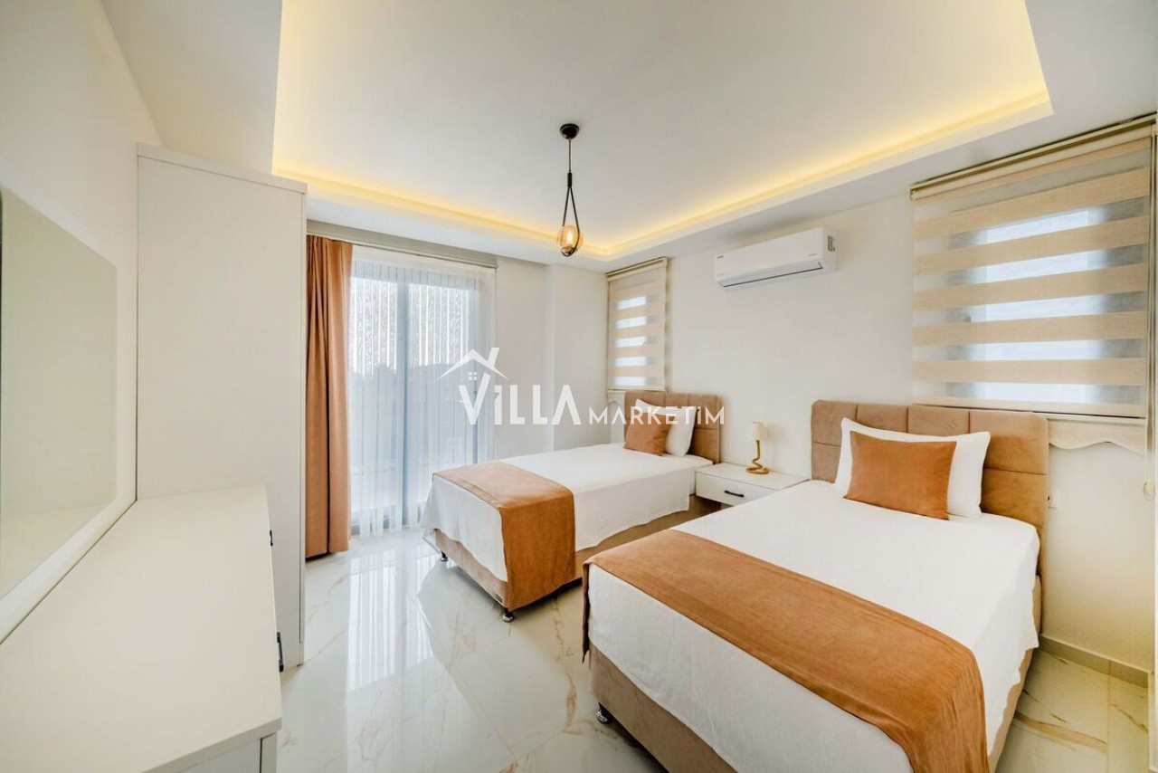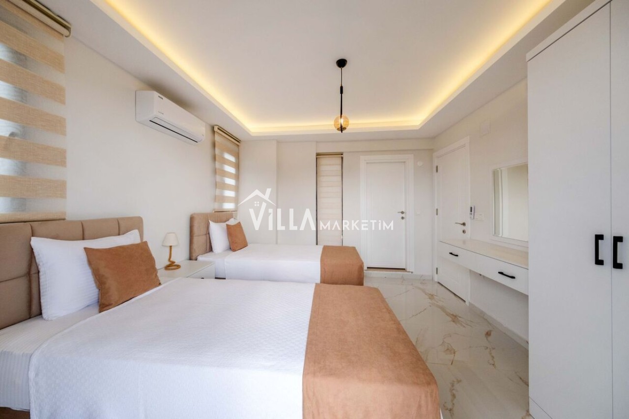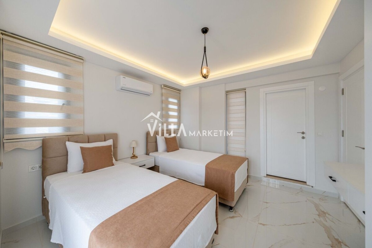 3.Yatak odası: Tek kişilik iki tane yatak, klima, ebeveyn banyo ve elbise dolabı bulunmaktadır.