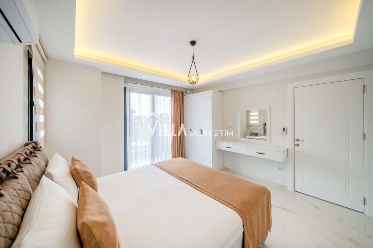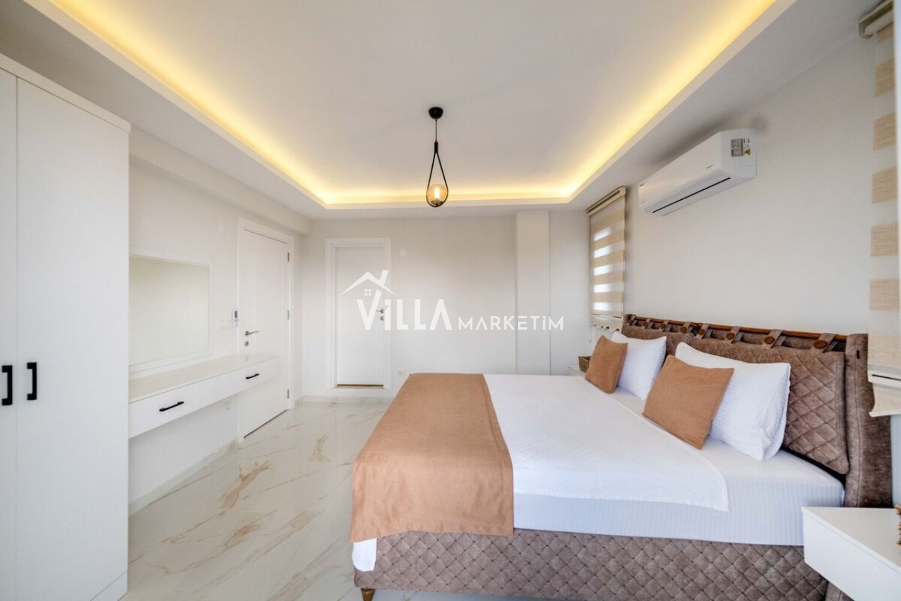 2.Yatak odası: Çift kişilik yatak, klima, ebeveyn banyo ve elbise dolabı bulunmaktadır.