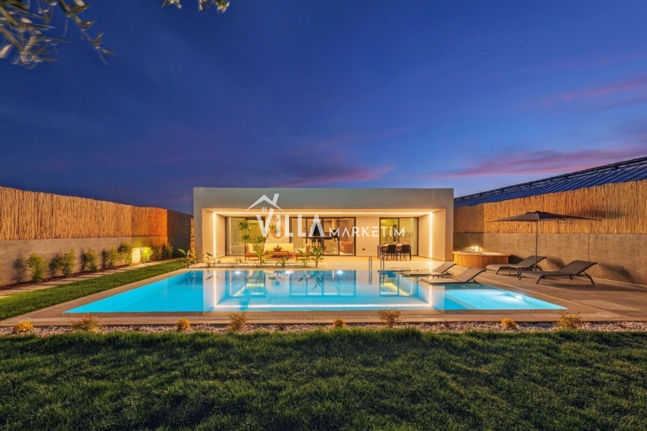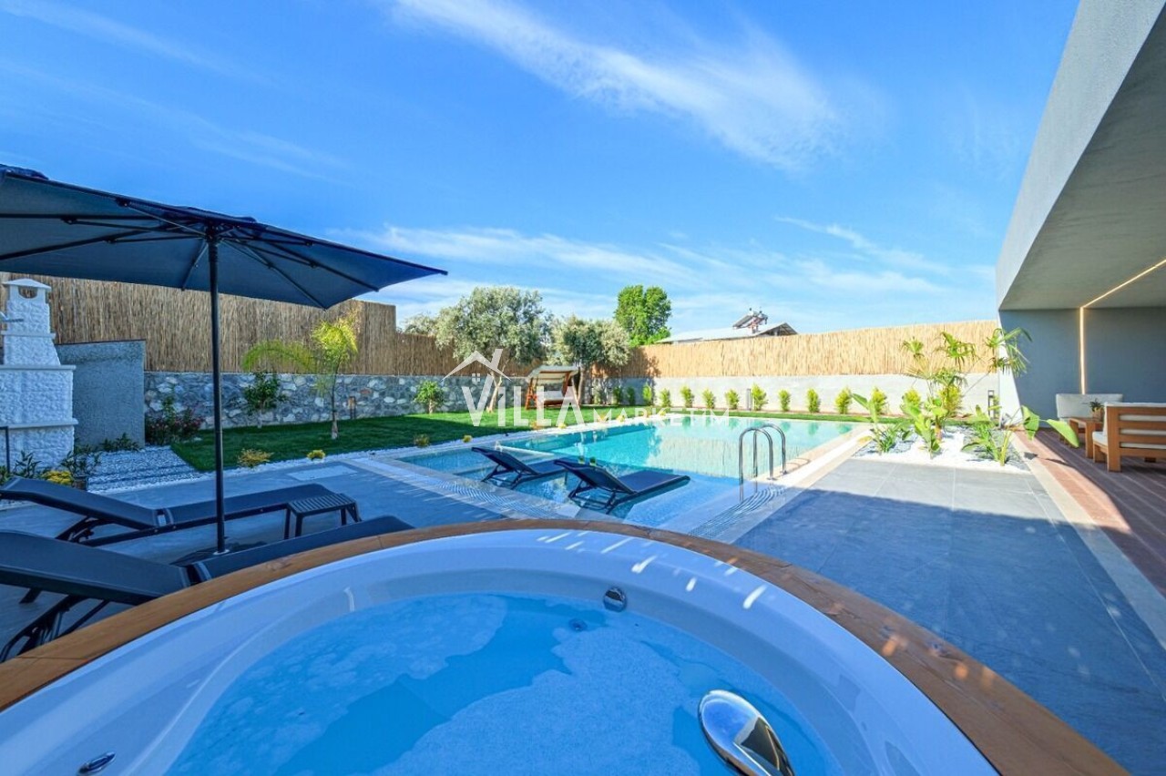 Villamız 4 kişi kapasitelidir. Villamızın içerisinde birinci yatak odası içerisinde bir adet çift kişilik yatak, jakuzi, ebeveyn banyosu ve klima yer almaktadır. İkinci yatak odasında ise iki adet tek kişilik yatak ve ebeveyn banyosu bulunmaktadır. Ortak alanda ise açık mutfak - salon, klima ve TV mevcuttur. Toplamda 4 kişinin konaklaması için her şeyin düşünüldüğü villamız siz misafirlerimiz için unutulmaz tatilin adresidir.