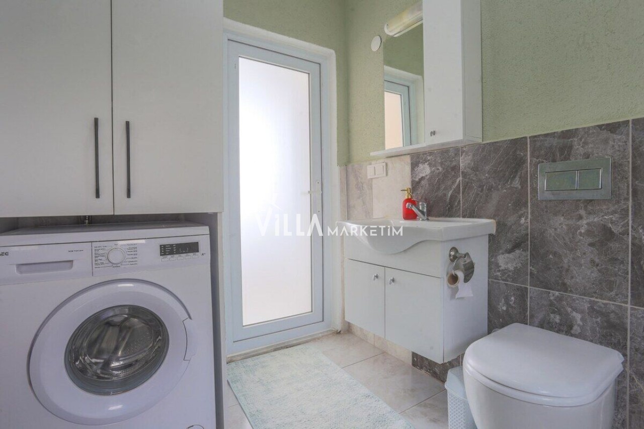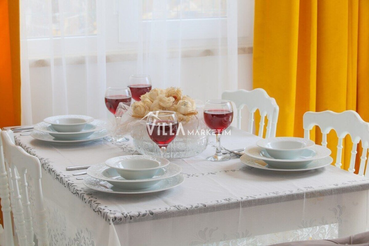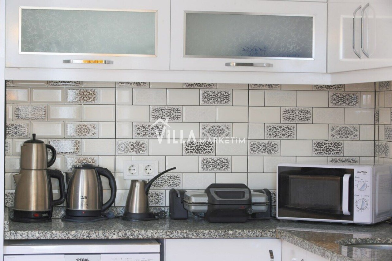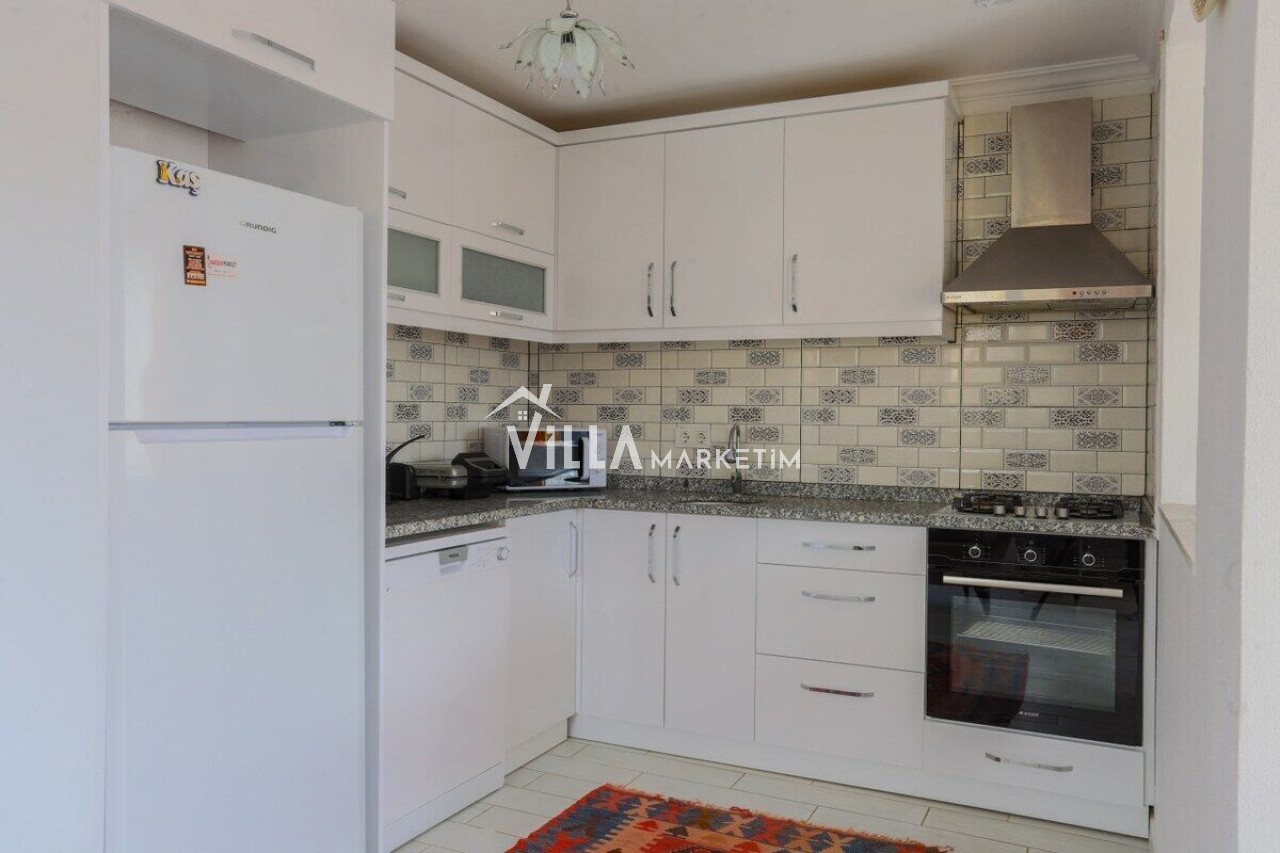 Mutfak : Amerikan mutfak içerisinde buzdolabı, bulaşık makinesi, çamaşır makinesi, 4 kişilik yemek masası ve sandalyeler, ankastre 4’lü ocak, davlumbaz, fırın, elektrikli su ısıtıcısı, yemek takımı, tava ve tencereler, çatal, bıçak takımı bulunmaktadır.