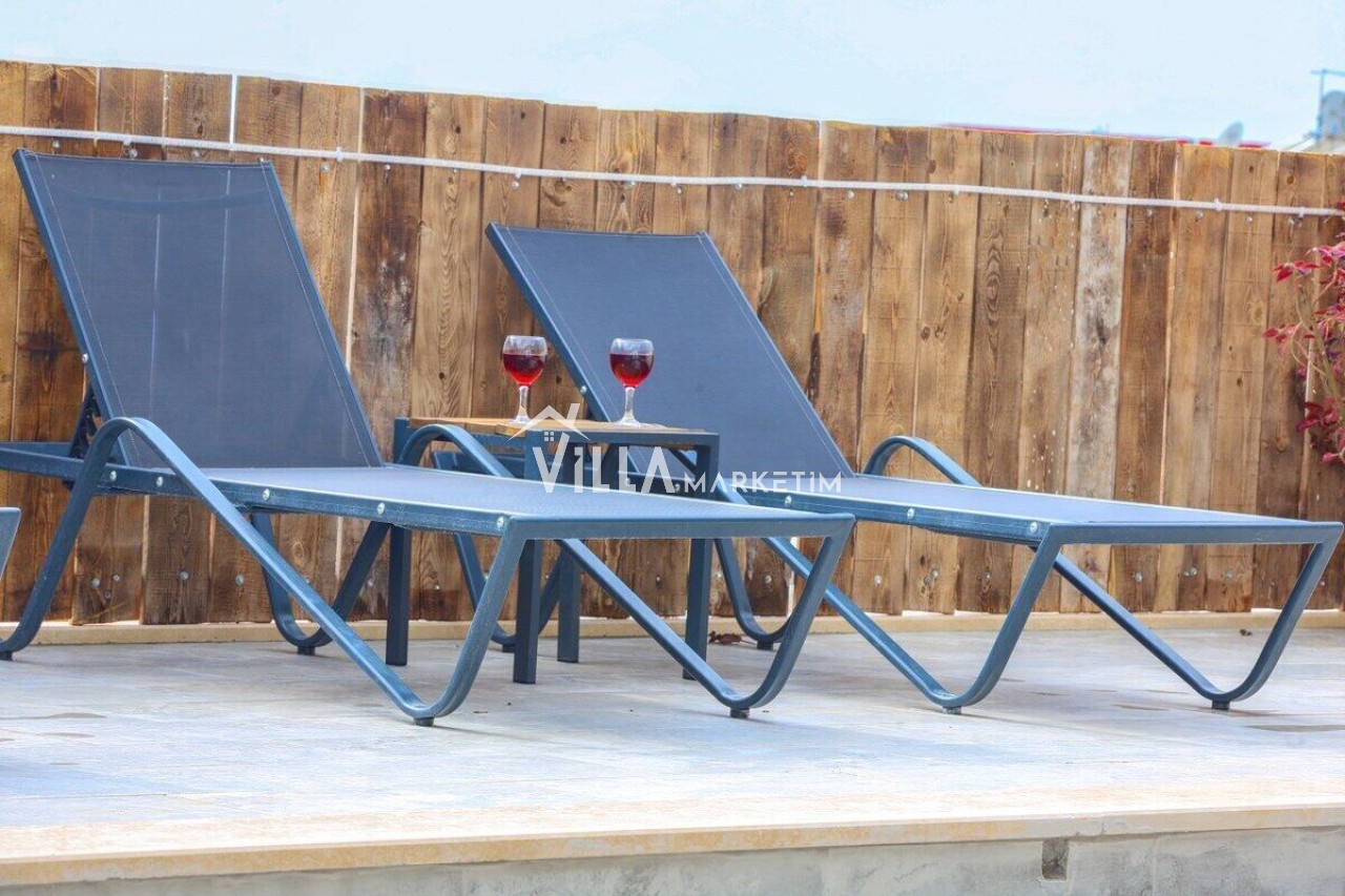 Bahçe : Bahçe içerisinde özel yüzme havuzu, 4 adet şezlong, bahçe yemek masası ve sandalyeler ve barbekü yer almaktadır.