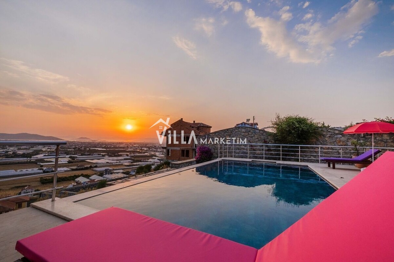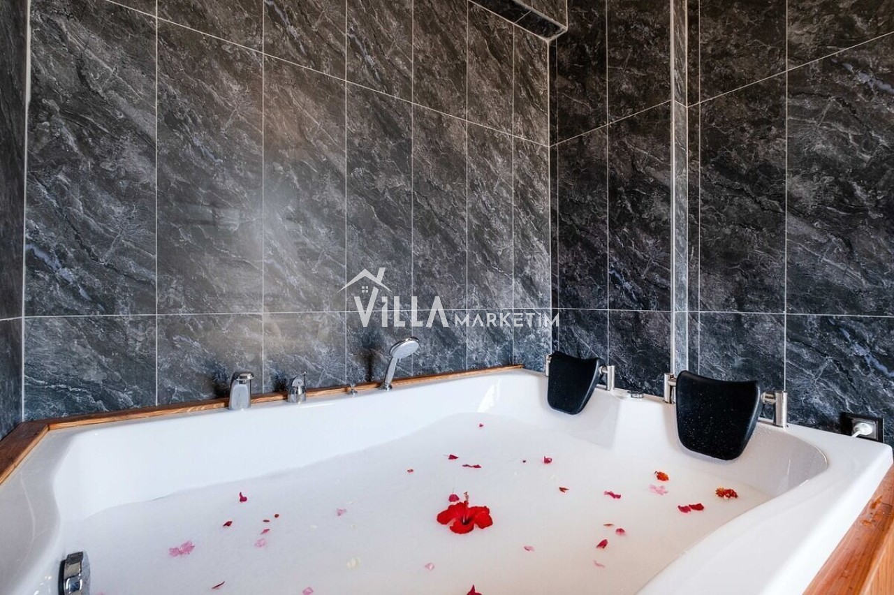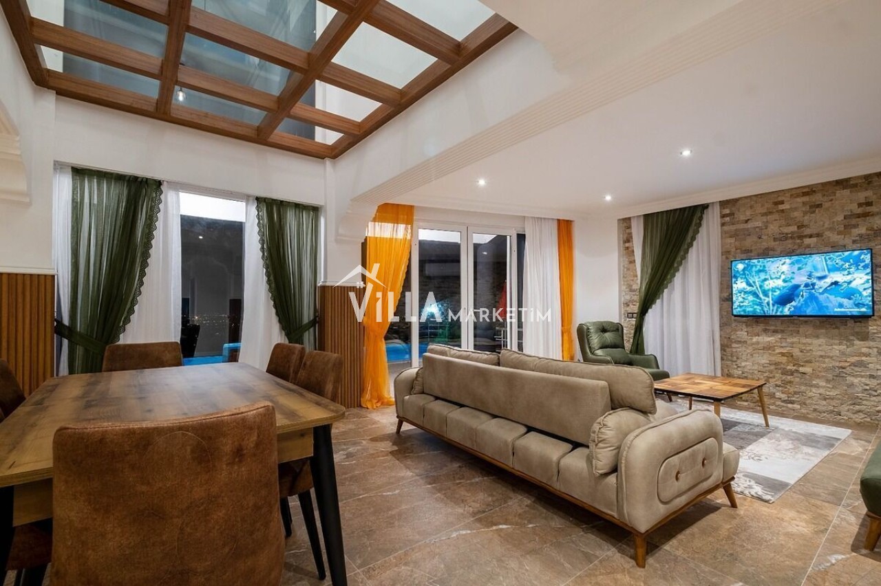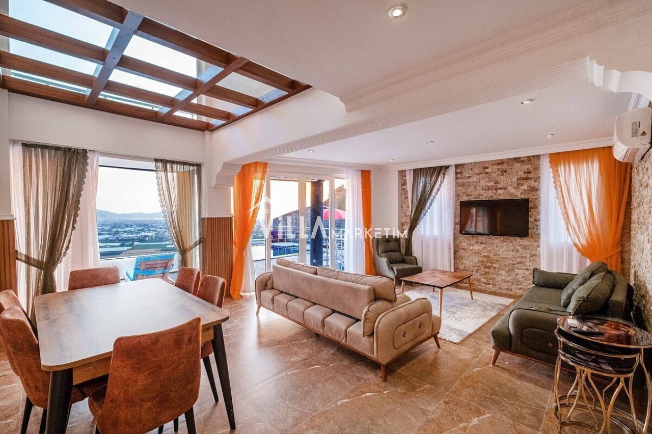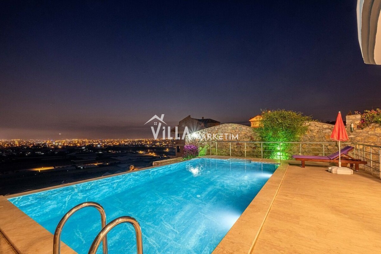 Fethiye şehir ve deniz manzaralı sauna ve jakuzi imkanlarıda sunuluyor, 8 kişinin rahatlıkla konaklayabileceği bir villadır